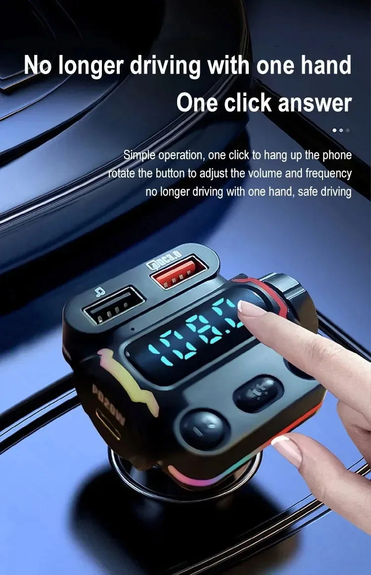 Operación simple para conectar el teléfono con un botón, gire el botón para ajustar el volumen y la frecuencia, ya no conduzca con una mano, conduzca con seguridad