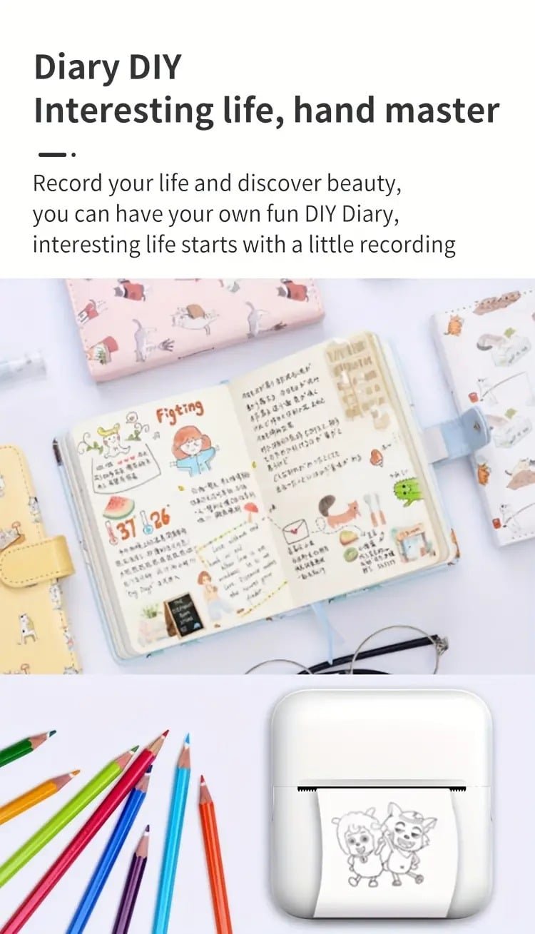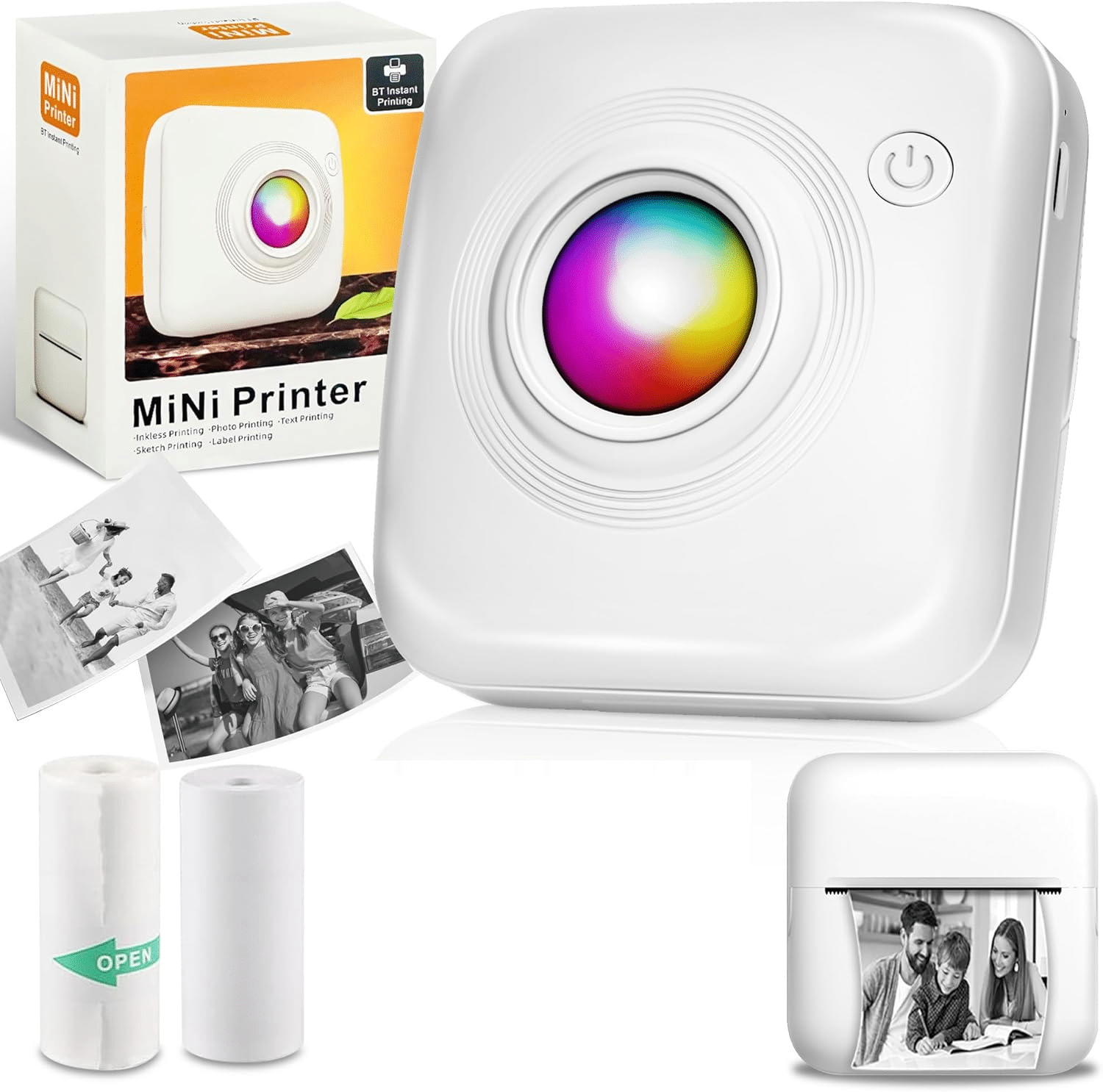 - [Diferentes rollos de papel de regalo] El producto incluye dos rollos de papel blanco, tres rollos de papel de color (azul, rosa, amarillo) y un rollo de papel autoadhesivo. Nuestra mini impresora te permite crear patrones coloridos y adorables. Ya sea para manualidades, álbumes de recortes o simplemente para añadir un toque personal a tus artículos, esta impresora es el compañero de juegos de enseñanza definitivo para tus hijos y una herramienta creativa para cualquiera que busque inspiración.