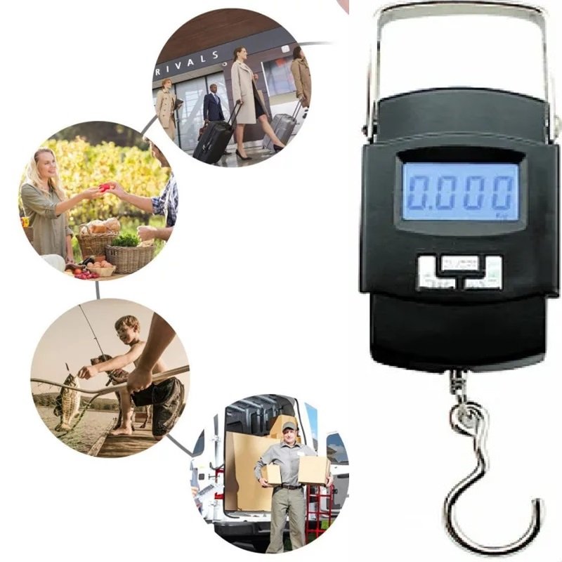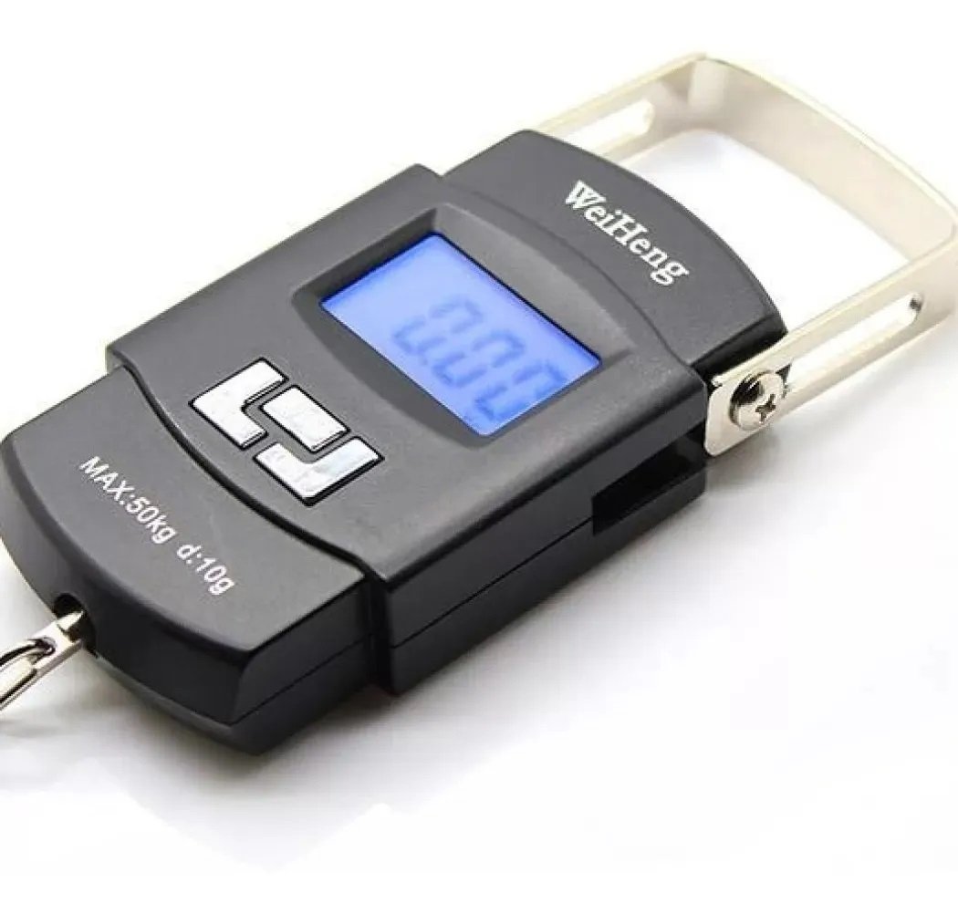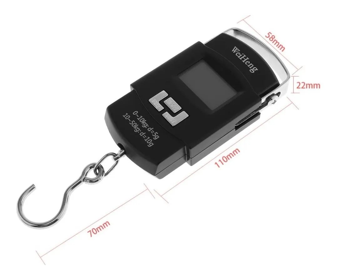 Te presentamos esta práctica Báscula electrónica portátil WeiHeng WH-A08 50kg LCD de doble precisión compatible con medición de temperatura con gancho colgante/retroiluminación
