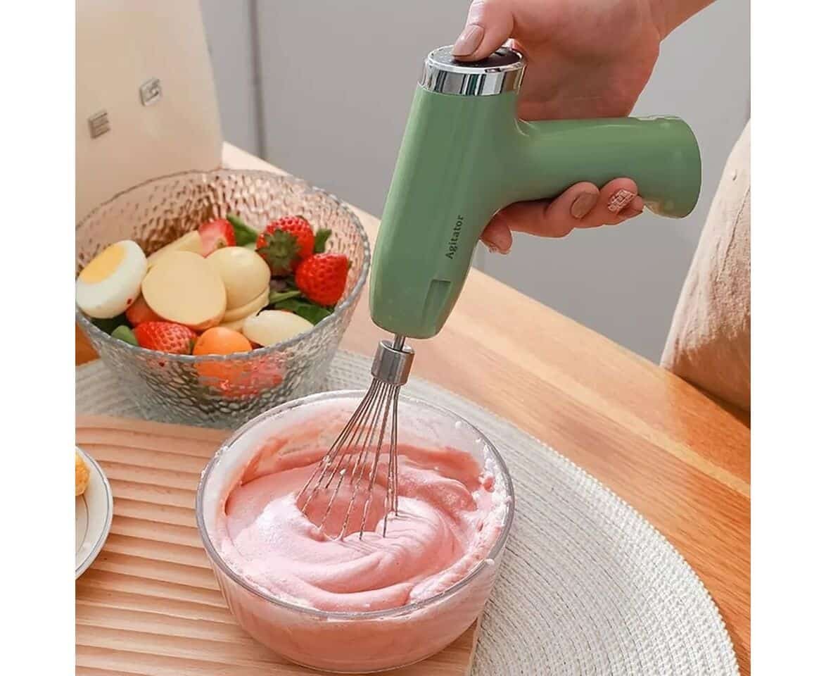 - Multifuncional: La batidora multifunción tiene dos cabezales mezcladores y una trituradora. El diseño tres en uno le ahorra tiempo y esfuerzo. Un cabezal agitador tiene un radio pequeño y una malla densa, lo que puede reducir las salpicaduras y es adecuado para batir crema e ingredientes a base de leche. El otro cabezal agitador se puede batir en la parte inferior y cubrir en múltiples direcciones, lo que es adecuado para batir claras de huevo e ingredientes líquidos de huevo. El molinillo puede picar todo tipo de ingredientes por ti.