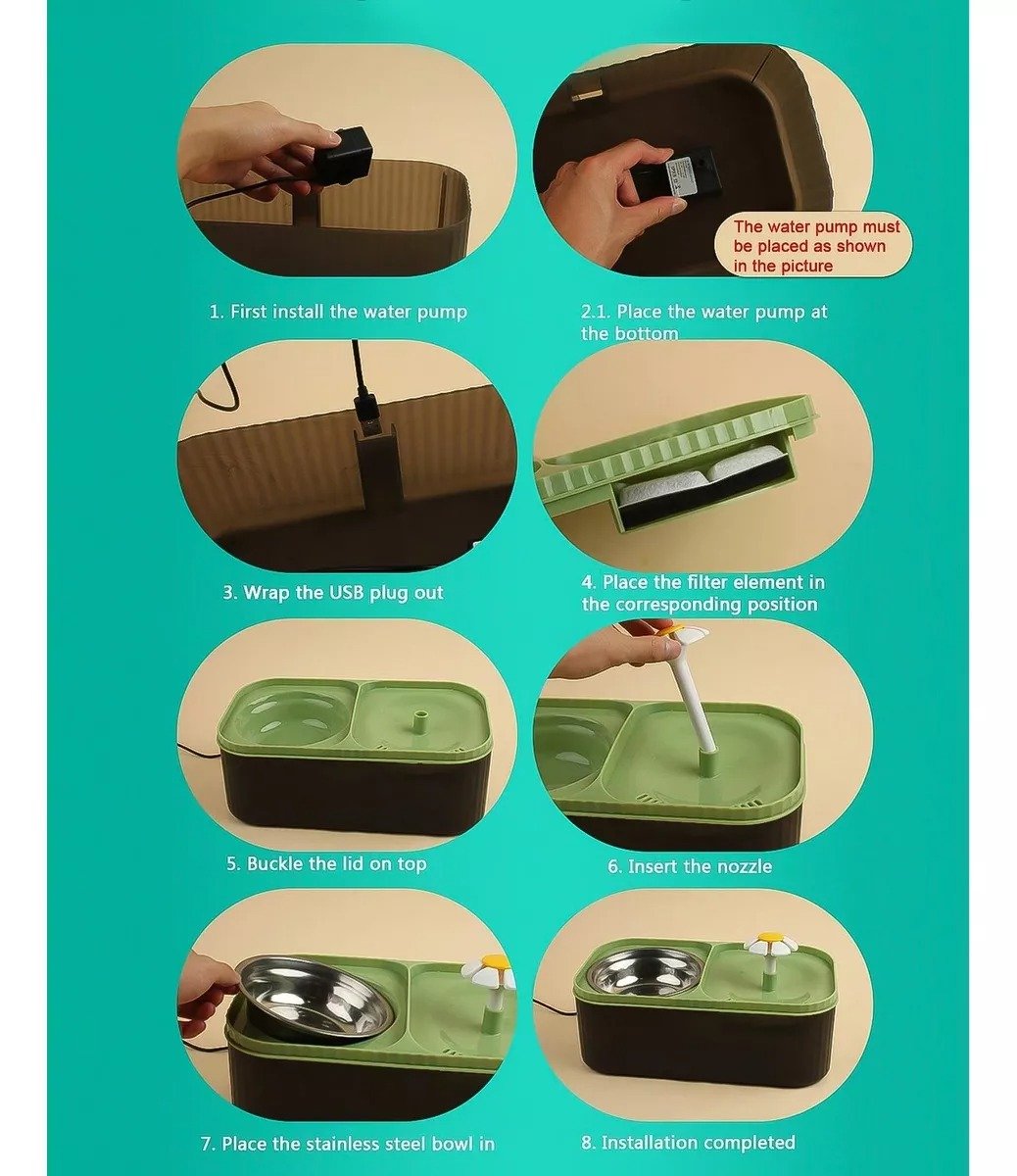 - Fácil de montar y limpiar: instrucciones dentro del producto, puedes seguir fácilmente los pasos para montar. La fuente para gatos viene con 3 filtros de repuesto. Para la salud de tu mascota, te recomendamos cambiar los filtros, limpiar la bomba y la fuente cada 2-4 semanas
