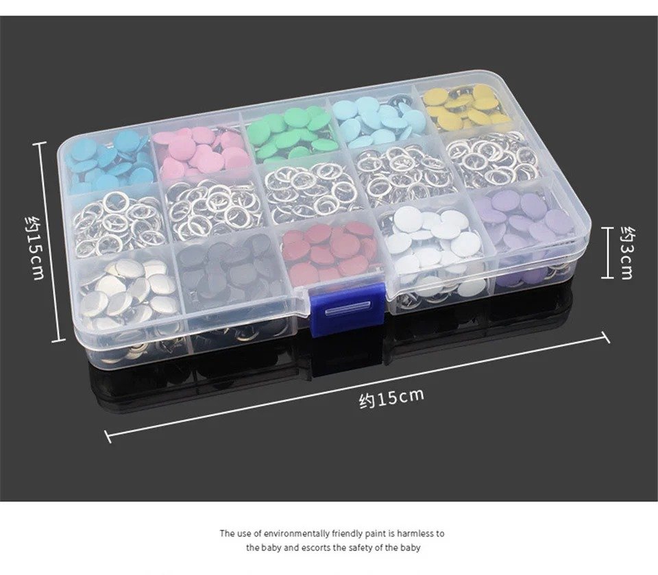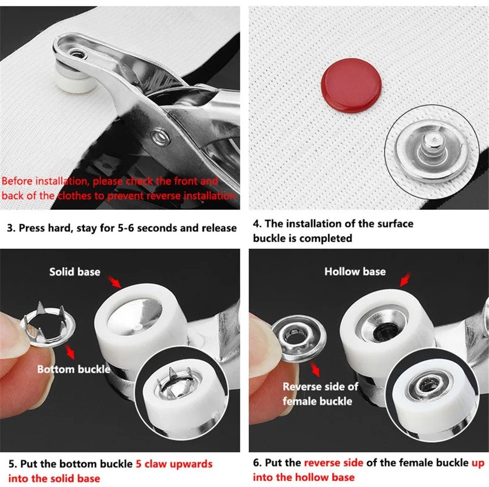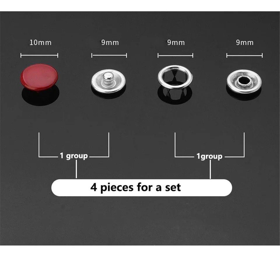 Uso: esta diseñado para ser usado en cualquier tipo de material, es compatible con la mayoría de los tipos de tela, incluyendo algodón, lino, poliéster, terciopelo, denim, cuero, entre otros. La compatibilidad se debe a que el método de colocación de botones a presión no requiere una presión excesiva que pueda dañar la tela.