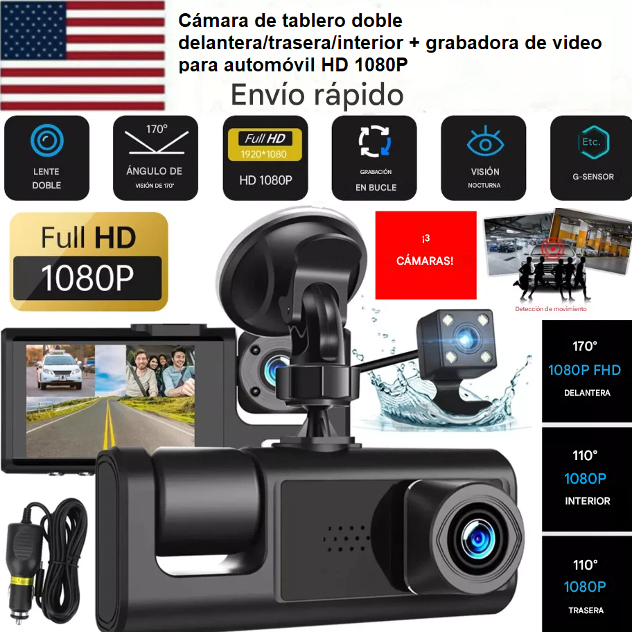 Cámaras triples: grabadora de conducción de automóvil transparente, cámaras triples delanteras + interiores + traseras, la pantalla de 2 pulgadas muestra imágenes en tiempo real, lo que hace que la conducción sea más segura.