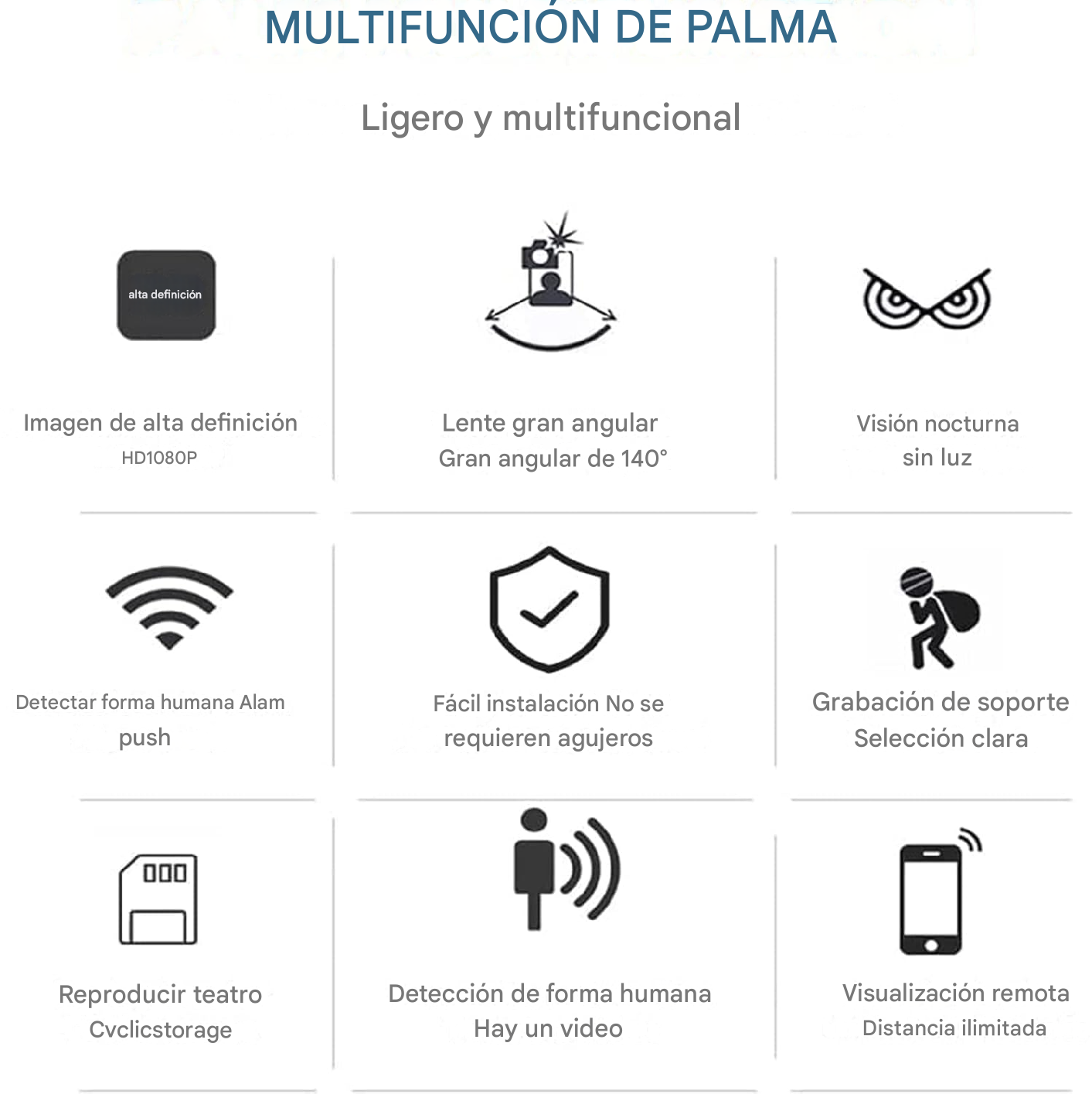 Tipo: cámara Spia, cámara escondida, cámara Micro, cámara Espia, cámara smart home, protección de seguridad