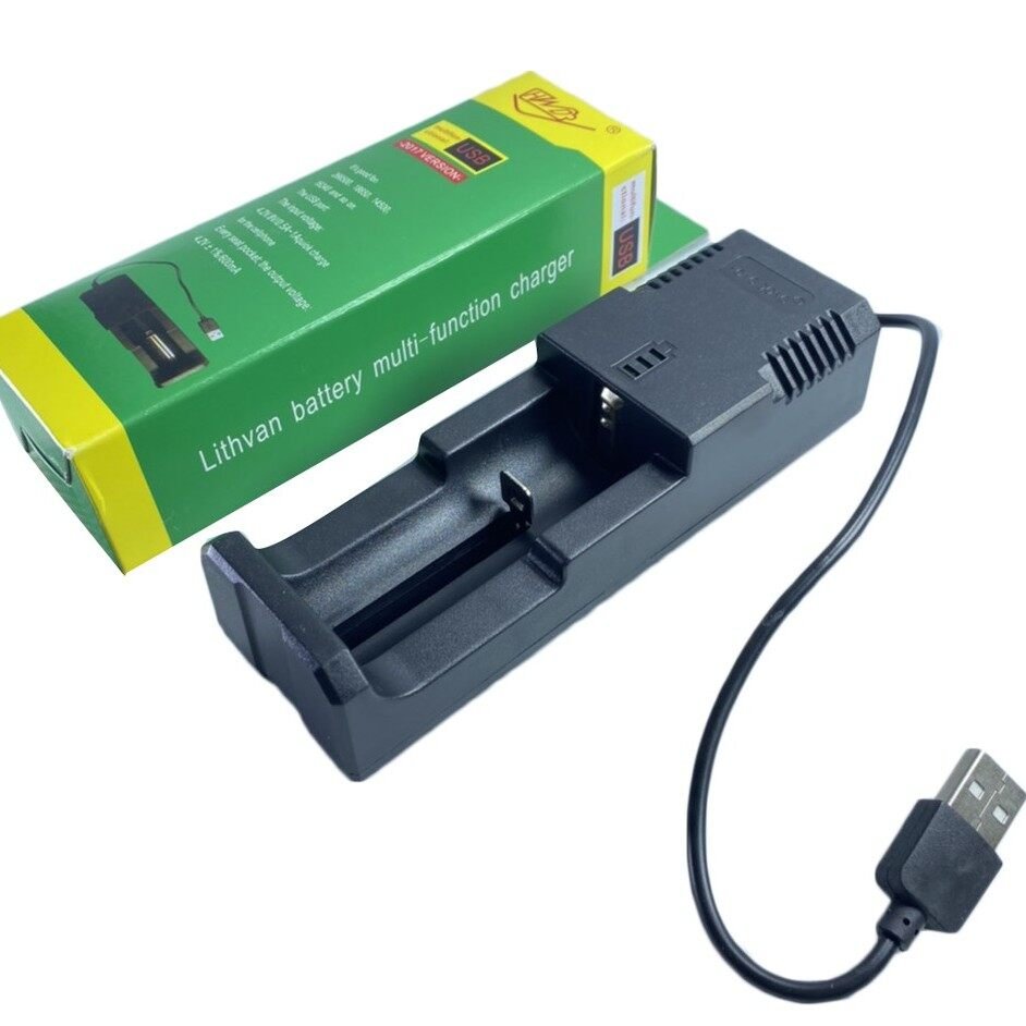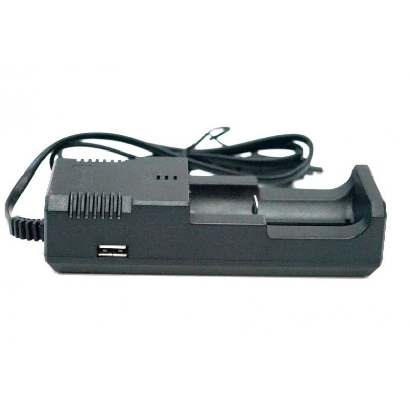 El cargador está presente proceso de carga de visualización animada de dos niveles: los LED son rojos-es el proceso de carga, la batería verde está cargada. Voltaje de entrada: 100 ~ 240 V. También tiene un puerto USB (salida) para cargar dispositivos aplicables a través del cable USB (no incluido). El tiempo de carga depende de la capacidad de la batería.