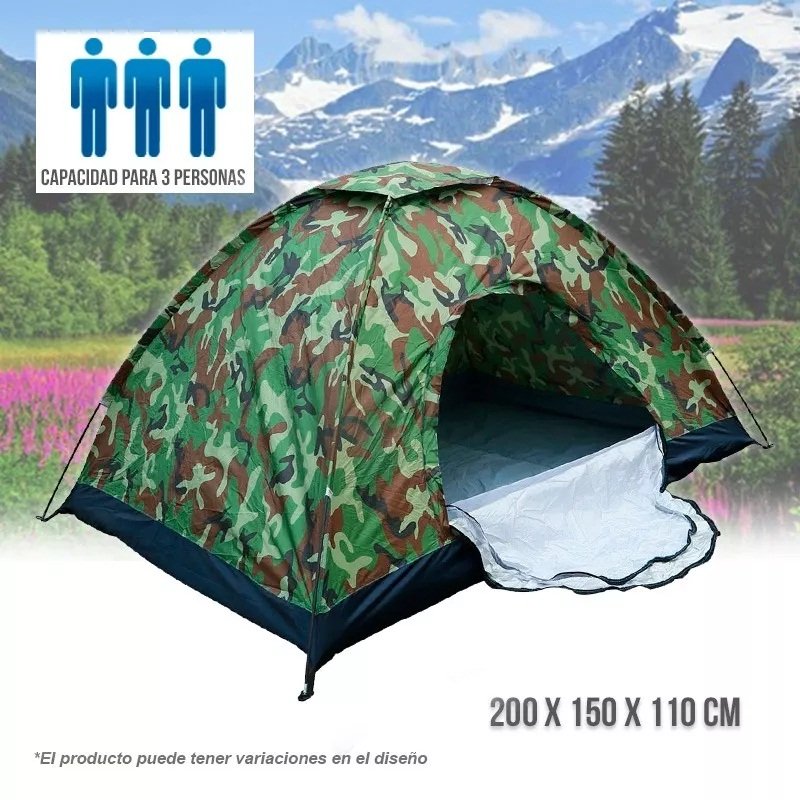 • RECOMENDACIÓN: Es recomendable armar su carpa sobre un plástico, para que no se te ensucie y por seguridad para evitar la humedad, mantenga las cremalleras cerradas para los moscos, colocar bien las estacas y evite guardar estando mojada o húmeda para evitar daños en la tela.