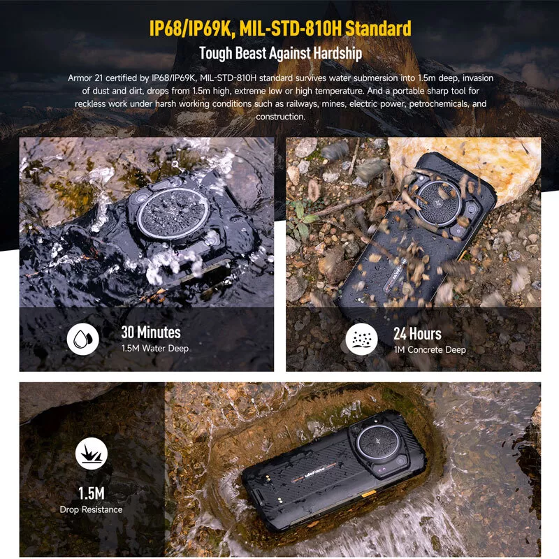 4. Nivel IP68/IP69K impermeable a prueba de polvo a prueba de golpes (1,5 m /30 minutos impermeable, 1m / 24 horas de hormigón a prueba de polvo profundo, resistencia a caídas de 1,5 M), se puede utilizar en amplios escenarios y aplicaciones de uso.