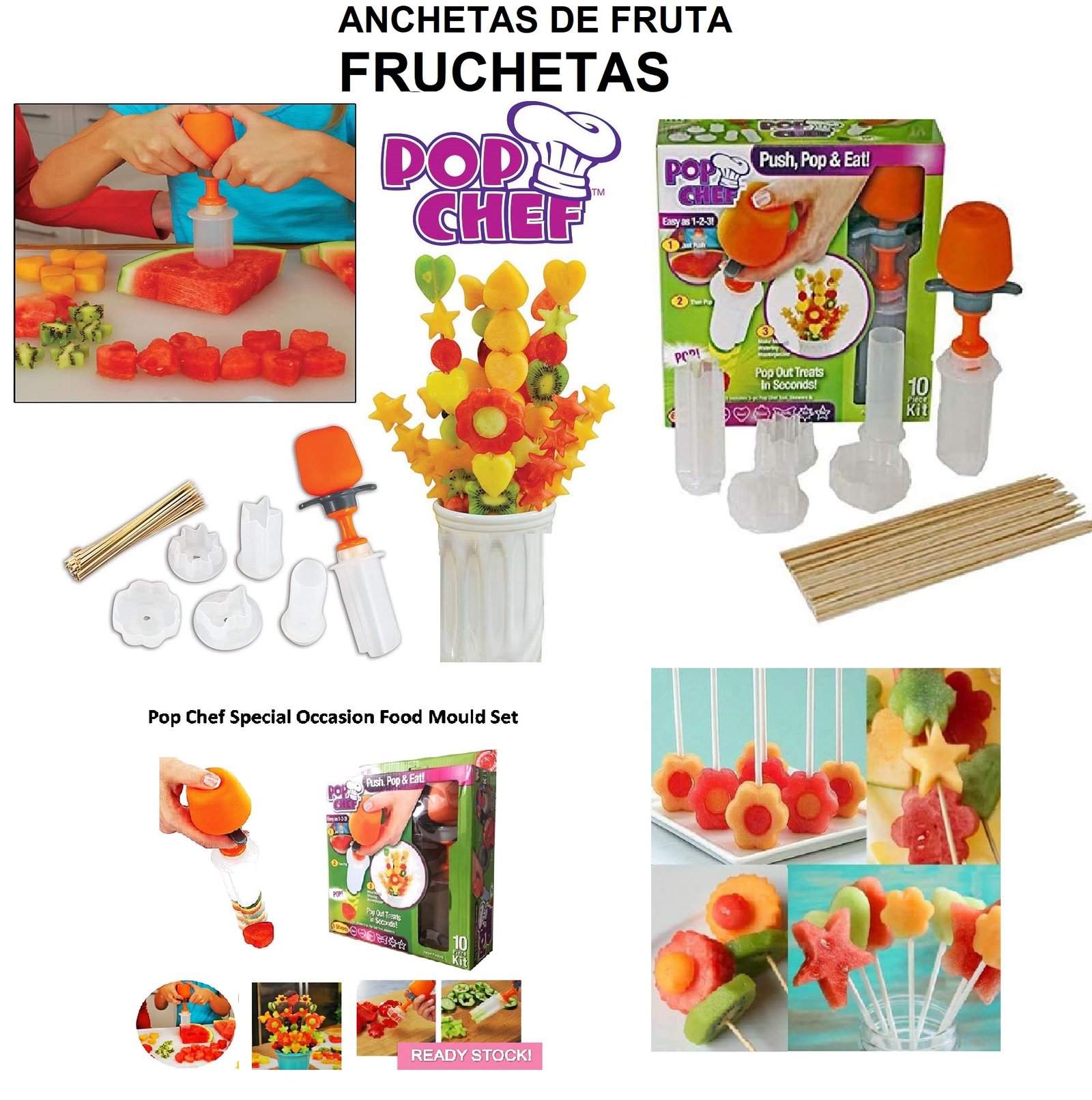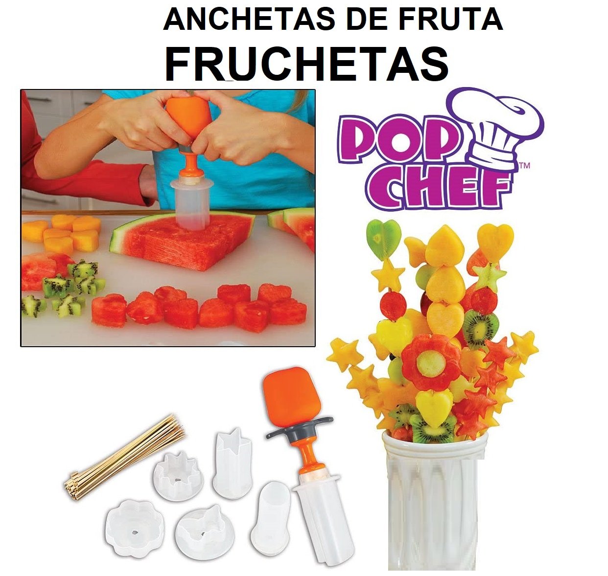 Set Pop Chef Para Decoración Fruchetas Alimentos Pinchos de frutas