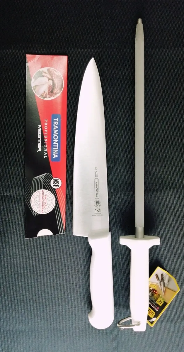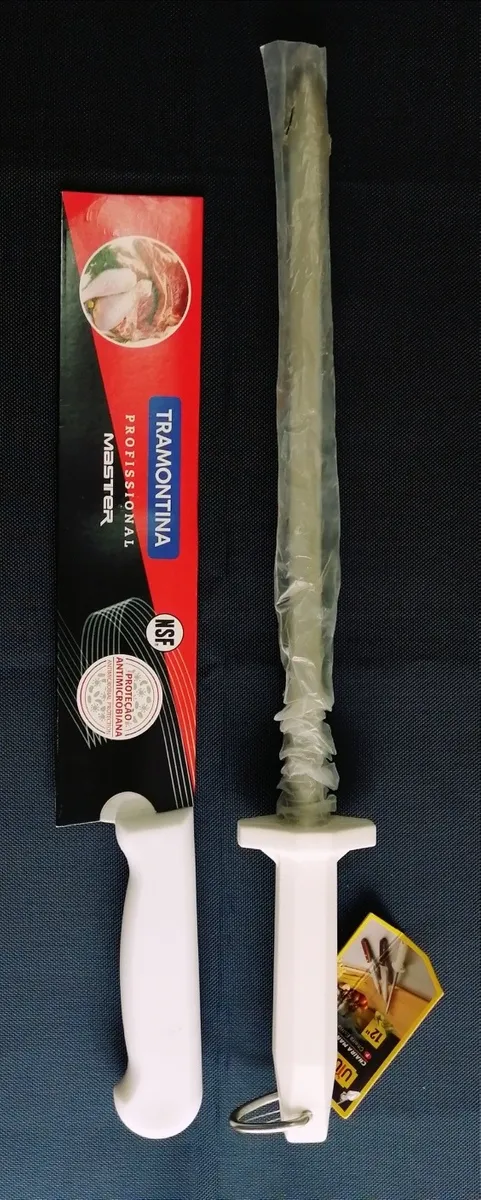 Calidad y durabilidad para profesionales que trabajan mucho. Con tecnología de punta, los cuchillos profesionales de Tramontina están siempre preparados para entrar en acción y lucirse con cualquier ingrediente, corte o receta. Eficiencia es lo que no falta. La altísima calidad de las láminas, resultado del tratamiento térmico compuesto por templado (calentamiento de la lámina), subcero (enfriamiento de 50 a 196 grados negativos) y revenido (aumento de la elasticidad del acero) les da vida larga y eficiente. La anatomía y ergonomía del mango de polipropileno con textura, inyectado directamente sobre el alma de acero, ofrecen seguridad y comodidad durante el manejo. La protección antimicrobiana inhibe y reduce el crecimiento de bacterias y hongos. Esta tecnología se incorpora durante el proceso de fabricación del mango y dura toda la vida útil del producto, pero no elimina la necesidad de lavarlo.