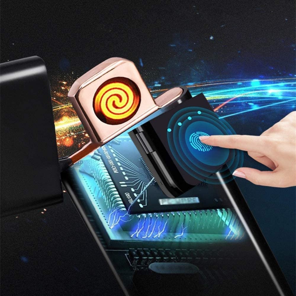 Encendedor avanzado para negocios: la superficie de renderizado brinda una sensación de textura suave y de alta calidad, diseño de interruptor de sensor de huella digital flotante fresco, pantalla LED de energía eléctrica, regalos empresariales de alto grado.