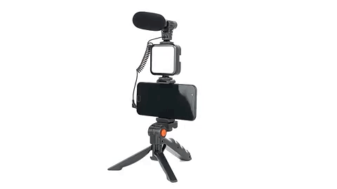 KIT DE VLOGGING PARA TELÉFONO INTELIGENTE, EQUIPO DE GRABACIÓN DE VÍDEO CON TRÍPODE, OBTURADOR DE LUZ LED PARA CÁMARA, SET VLOGGER DE YOUTUBE Micrófono de reducción de ruido: El micrófono cuenta con un amplio rango de captación cardioide y una potente tecnología de cancelación de ruido, además de una cápsula de micrófono de alta calidad para una grabación de alta calidad. Conexión por cable 3.5mm.