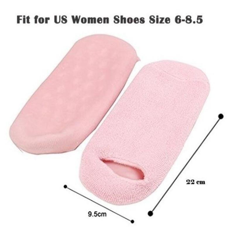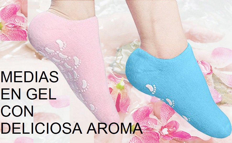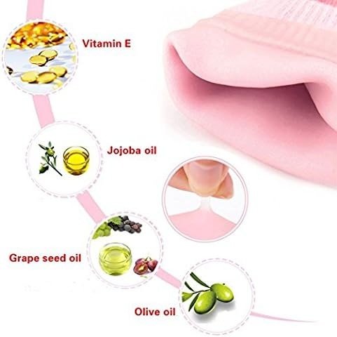 ,-Gel de silicona para aliviar el dolor: los calcetines de spa de gel con forro de gel especialmente formulado son ricos en vitamina E y aceites minerales (aceite de jojoba, aceite de semilla de uva, aceite de oliva, etc.) Puedes suavizar tu piel por si sola, pero funciona mejor cuando se combina con tu aloe o locion favorita. Cura una situacion ya dolorosa, hidrata constantemente tus talones para un aspecto natural y mas suave