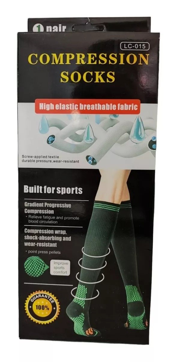 Los calcetines de compresión combinan la estabilidad de la cinta de kinesiología con el rendimiento del tejido de compresión. Perfecto para el alivio de las venas varices u otros problemas de hinchazón de las piernas. Apoye su pie, talón, arco, tobillo y pantorrilla. Puedo usarlo todos los días. Previene los coágulos de sangre después de la cirugía y se adapta bien a diferencia de otras variedades. Acelera la circulación de la sangre hacia el corazón y elimina los productos de desecho metabólicos de los músculos. Están diseñados para promover la circulación sanguínea y el flujo de oxígeno, evitando calambres, fatiga, hinchazón y ayuda en la recuperación muscular, venas varicosas y diabéticos.