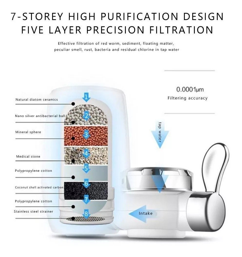– Repuesto purificar de agua Sws – Doble acción piedra lavable – Doble acción se puede usar el agua filtrada para tomar, cocinar o agua normal para cualquier otra actividad. – El filtro elimina el cloro , el mal sabor , los olores desagradables y los sedimentos del agua corriente y garantiza un agua mas limpia y con mejor sabor. REMUEVE: Oxido = 100% Gusanos = 100% Parasitos = 100% Giarda = 99.99% Cryptosporidium = 99.99% Cloro residual = !100% E-coli = 92.14% Suciedad = 100% Moho = 100% Iones de metales pesados, sabores y olores desagradables. dependiendo de la calidad y el caudal de agua. Para Purificadores Ref. 809 y 814 *Duración del filtro: aprox. 10.000 litros, / 6 meses aprox. *El mantenimiento de lavado se debe realizar cada vez que merme el flujo de agua, con papel de lija suave o esponja, Nota: El manteniendo y la duración del filtro dependen de la calidad de agua. Contenido: 1-Filtro cerámica Peso Filtro: 58gr