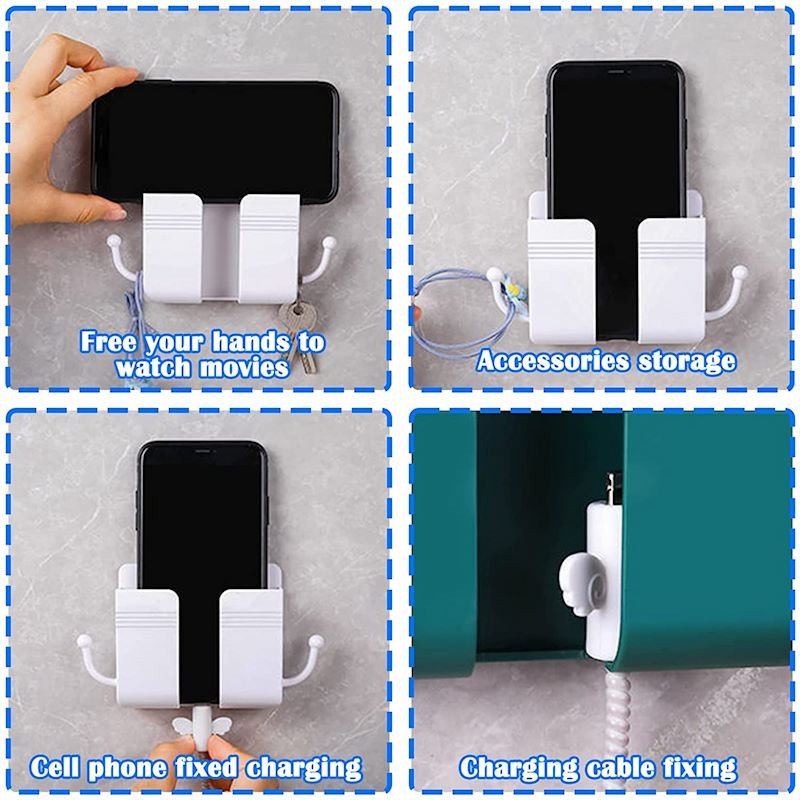 Caja de almacenamiento montada en la pared, caja de almacenamiento de carga para teléfonos móviles con control remoto CARACTERÍSTICAS Con puerto de carga: hay un orificio en la parte inferior de la caja de almacenamiento,que es un puerto de carga, que es práctico para cargar elteléfono móvil. Sin perforaciones: no daña la pared, fácil de instalar. Almacenamiento multiusos: almacenamiento de papelería de oficina, almacenamiento de artículos de baño, almacenamiento de