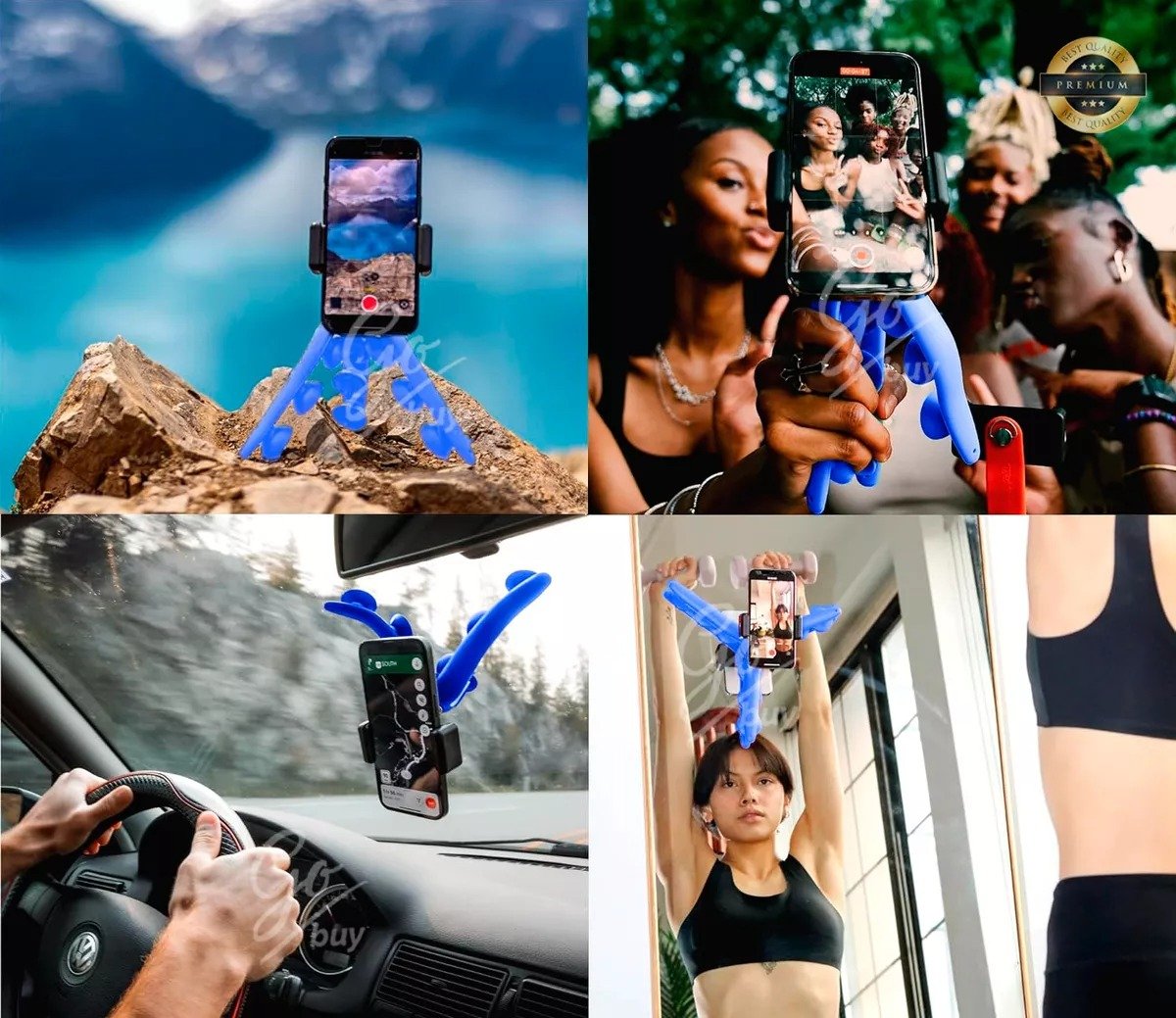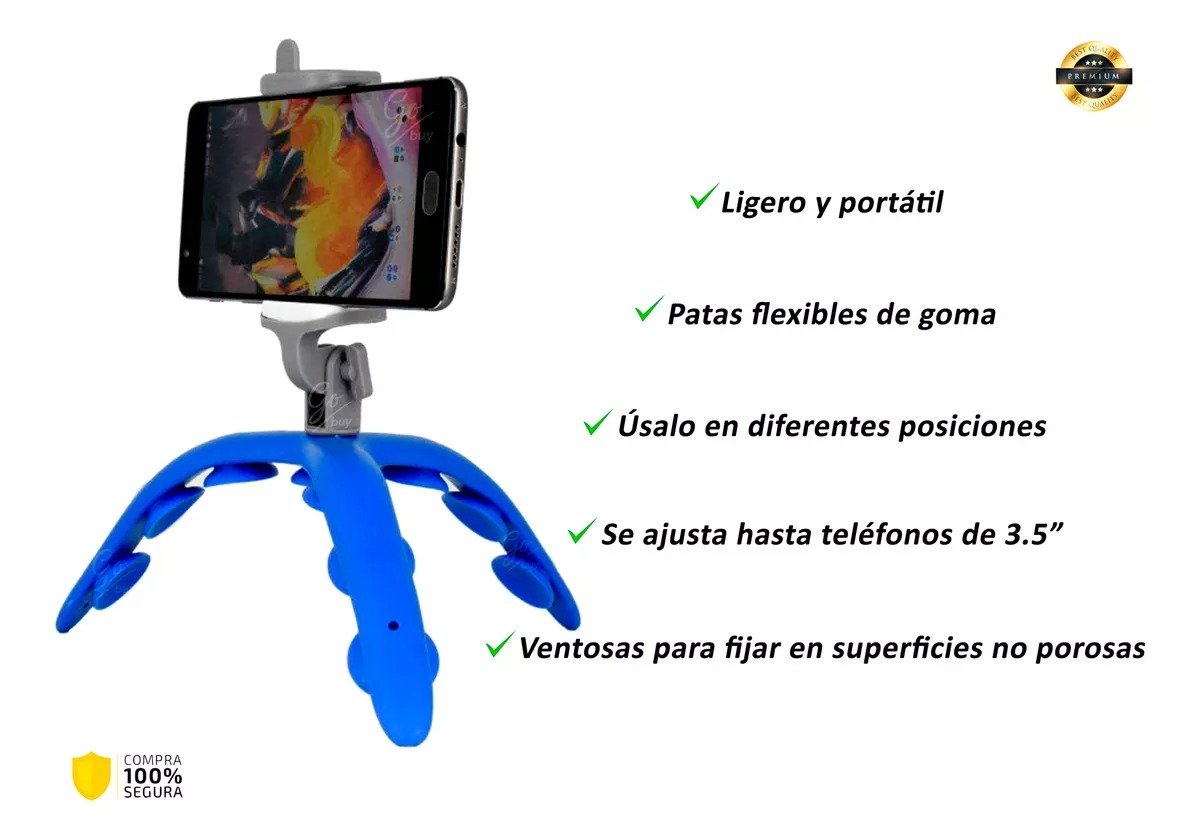 GANCHO SOPORTE Tripode para celular y cámaras flexible con ventosas octopus