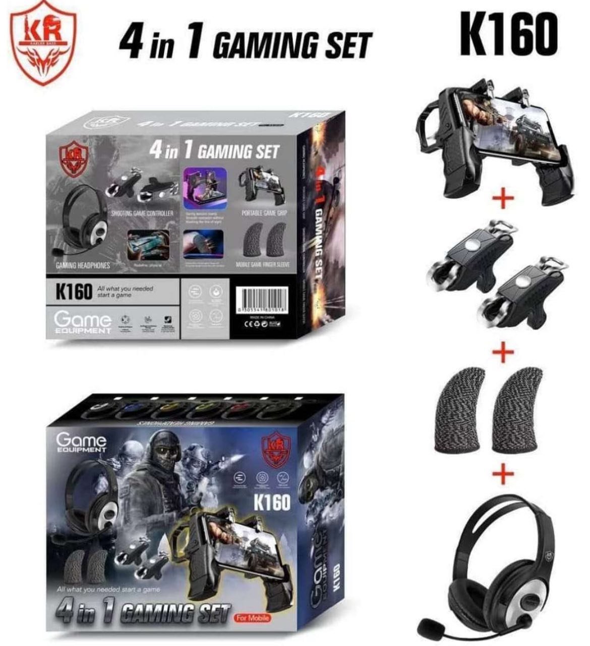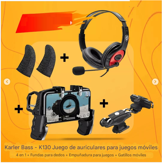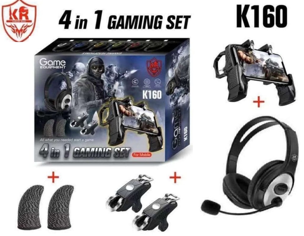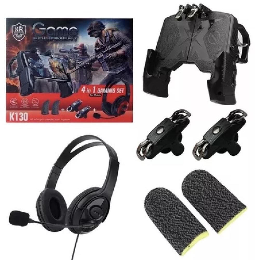 Juego de juego K150: Kit de juego móvil 4 en 1 con auriculares, gatillos, empuñadura y fundas para dedos – Precio en Mascate, Omán