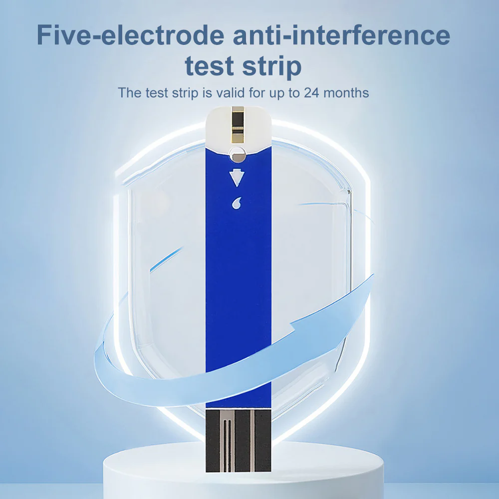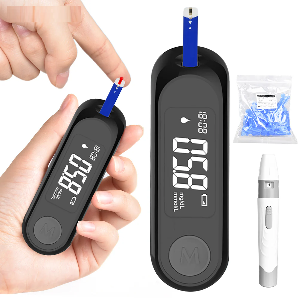 • Diseño portátil:Su diseño compacto y ligero hace que sea fácil de transportar, lo que le permite medir sus niveles de azúcar en sangre dondequiera que esté.