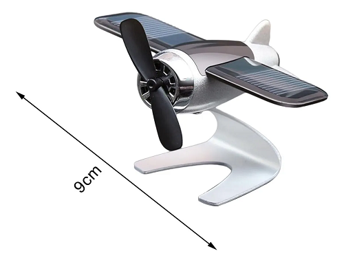 difusor de aromaterapia: el núcleo de aromaterapia se puede instalar dentro del adorno del avión para disfrutar de la fragancia de la naturaleza. Rotación solar: el modelo de avión monoala utiliza energía solar como fuente de energía para hacer girar la hélice, lo cual es hermoso y novedoso. Hélice silenciosa: hélice de precisión, rotación suave, no afecta a vista para dormir y conducir para bebés. Adorno para coche: el adorno de avión es hermoso, decoración de coche interesante y práctica. Este es un gran regalo de Navidad para ti, tu familia o tus amigos. Escena aplicable: este adorno se puede utilizar para el salpicadero del coche, el hogar, la oficina, el escritorio, etc. Es simple, elegante y hermoso, y muestra tus diferentes gustos.Especificaciones