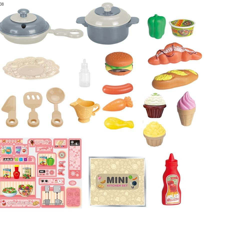 Característica2: Contiene una variedad de utensilios de cocina, como ollas, sartenes, utensilios, etc., que admiten diversos juegos de cocina, promueven la coordinación mano-ojo y el desarrollo cognitivo, adecuado para que jueguen niños y niños en edad preescolar.