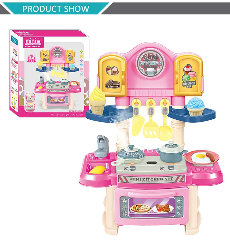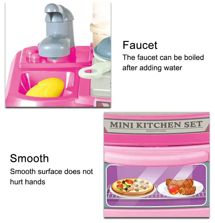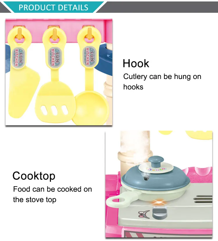 Hermosa y divertida cocina siendo un juego de rol simulado para compartir en familia y amigos permitiendo cultivar las habilidades cognitivas y pasatiempos de los niñas, es multifuncional. Los colores vivos y los bonitos diseños llamarán fácilmente la atención de los niños mientras se divierten. Los niños pueden aprender a cocinar a diario, y este producto viene acompañado de hermosos sonidos e iluminación.