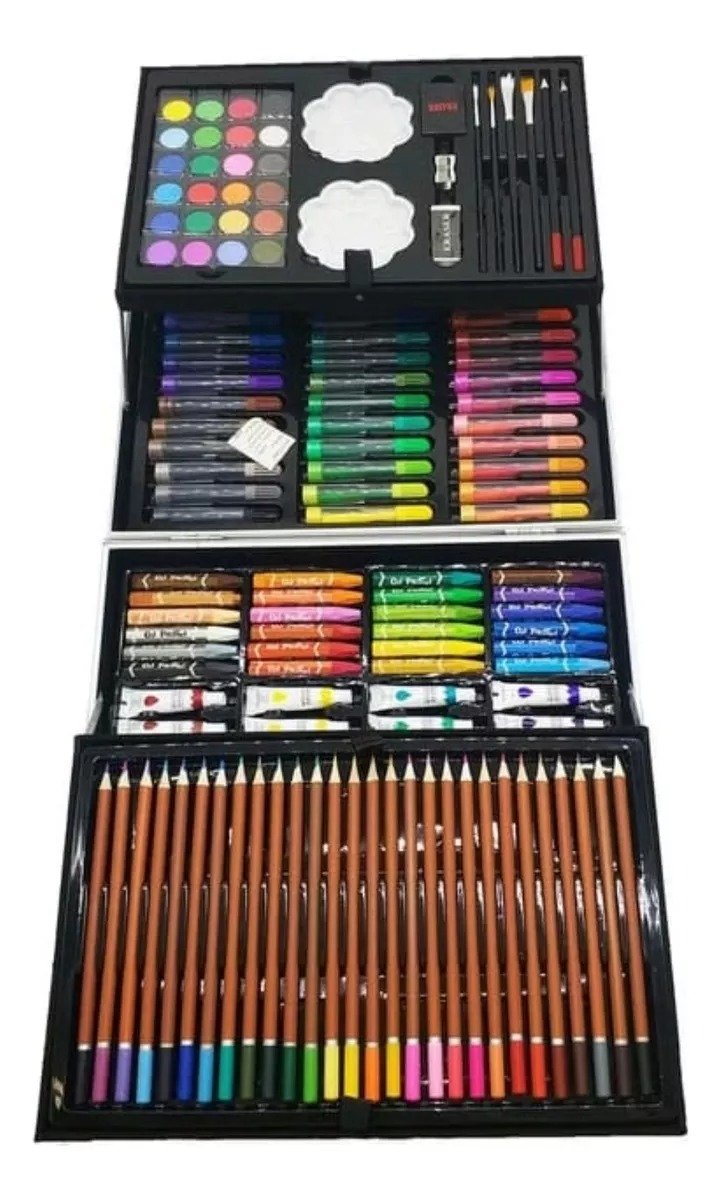 Set Arte Maleta Metalica X 145 Piezas Crayon Acuarela Plumon Pinturas