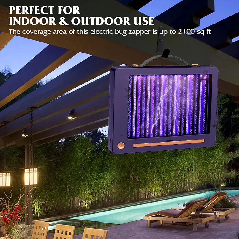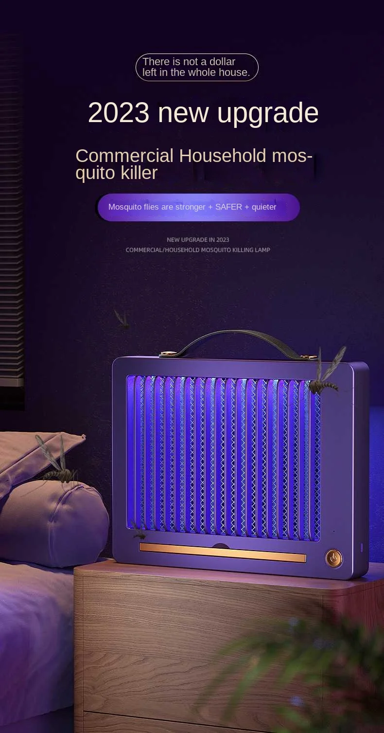 Eficaz matamosquitos: la lámpara matamosquitos eléctrica utiliza una luz púrpura que atrae a los mosquitos y otros insectos voladores, eliminándolos eficazmente.Enchufe y carga: Esta lámpara mata mosquitos cuenta con un conveniente diseño de enchufe y carga, que no incluye baterías, lo que garantiza un funcionamiento continuo y confiable.Uso versátil: adecuado para varios entornos, es un complemento perfecto para su hogar, lugares comerciales o espacios al aire libre, que le ofrece un ambiente cómodo y libre de mosquitos.Eficiencia energética: a pesar de su potente funcionamiento, esta lámpara tiene una potencia nominal de solo 3W, lo que la convierte en una solución de eficiencia energética para sus problemas con los mosquitos.