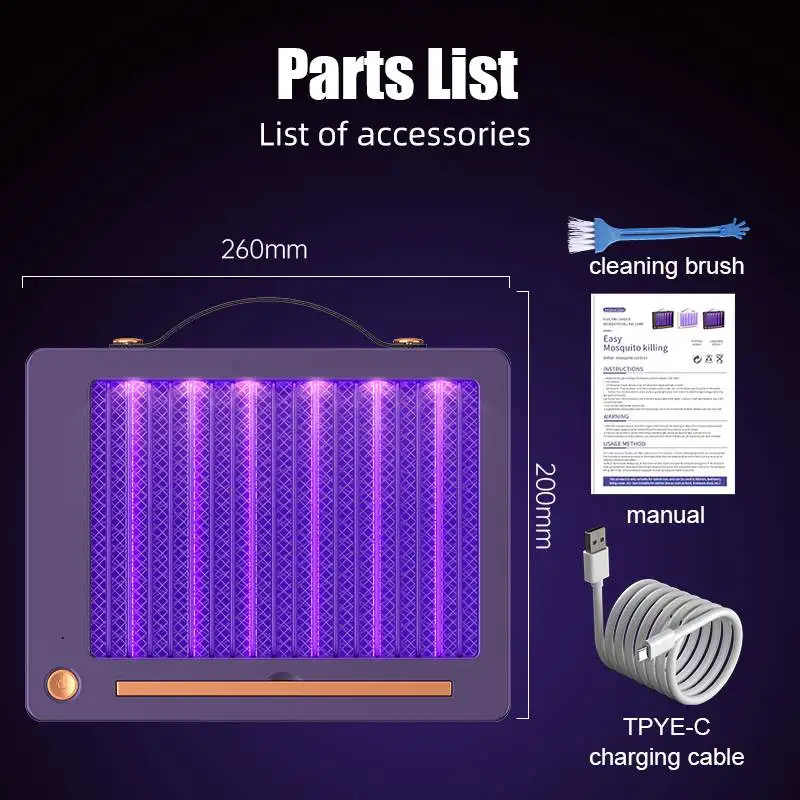 1 x lámpara eléctrica para matar mosquitos (color a su elección) 1 x cable tipo C