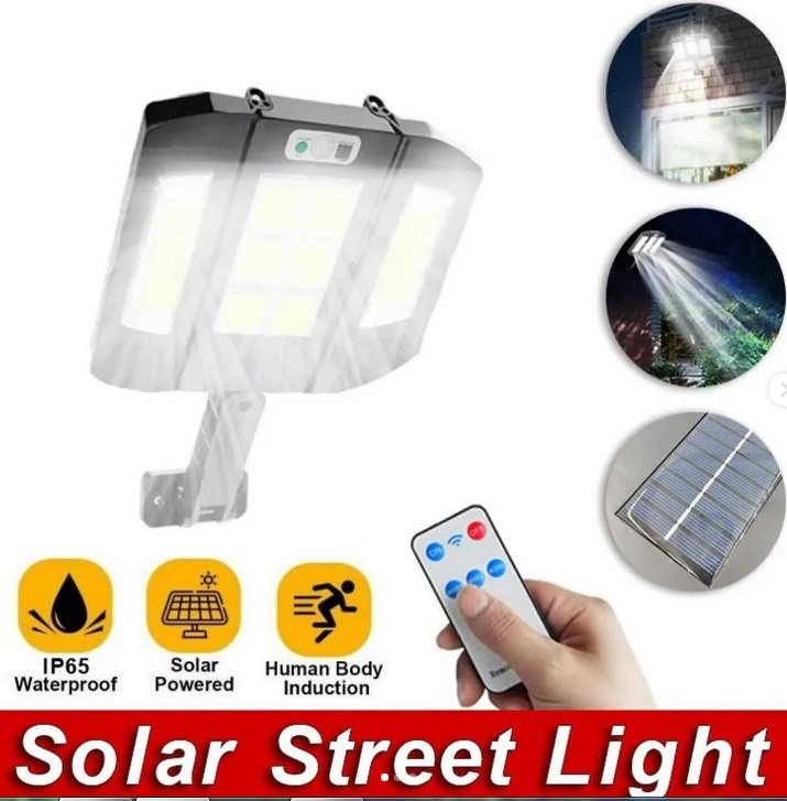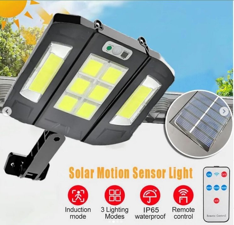 LÁMPARA SOLAR 136 LED COB SENSOR DE MOVIMIENTO ATARDECER CONTROL REMOTO Con 136 LED, esta lámpara genera una iluminación fuerte y uniforme . Puede usarlo para iluminar su patio, jardín,camino de entrada o incluso como luz de seguridad en la entrada de su hogar.Gracias al uso de tecnología LED, esta lámpara es muy eficiente energéticamente . Emite una luz brillante y consume una pequeña cantidad de energía, lo que se traduce en un ahorro a largo plazo