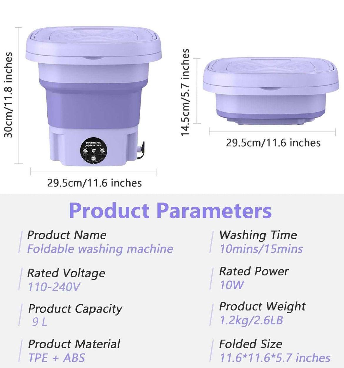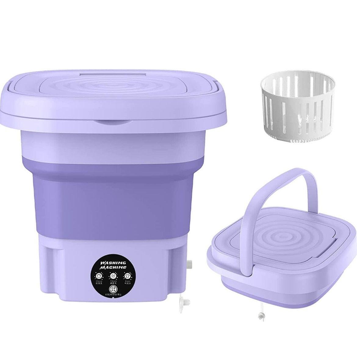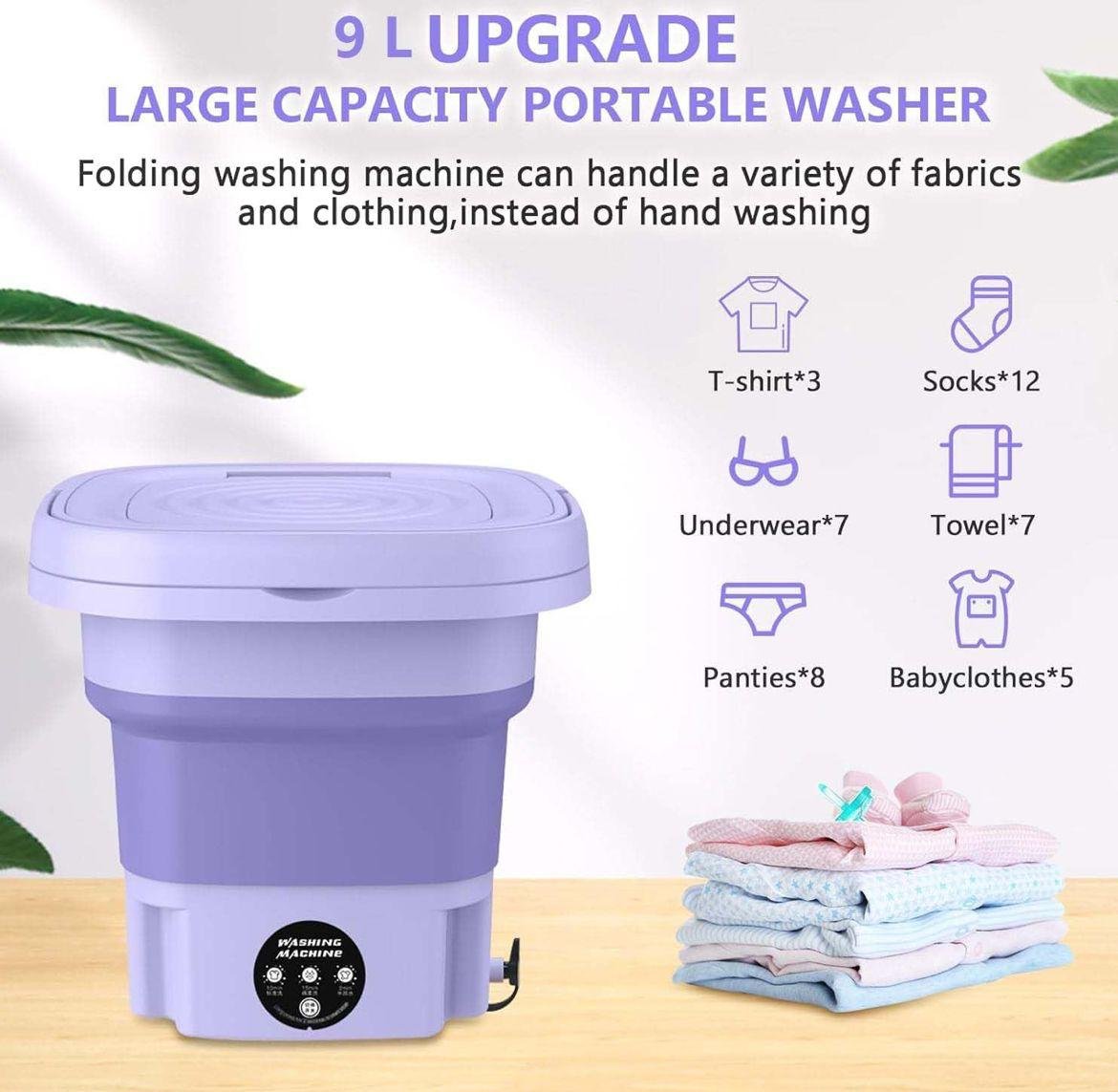 - [Lavado y secado]: esta lavadora plegable está integrada con lavado y secado, multiusos, de tamaño pequeño pero totalmente funcional. Lavadora plegable, luz azul y cesta de drenaje, que es muy adecuada para lavar ropa de niños, ropa interior, calcetines, toallas, etc. Quita eficazmente y limpia tu ropa.