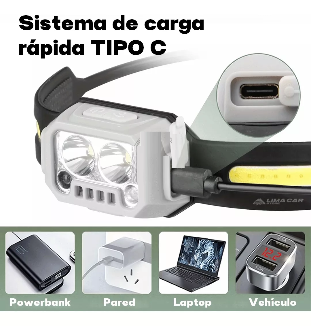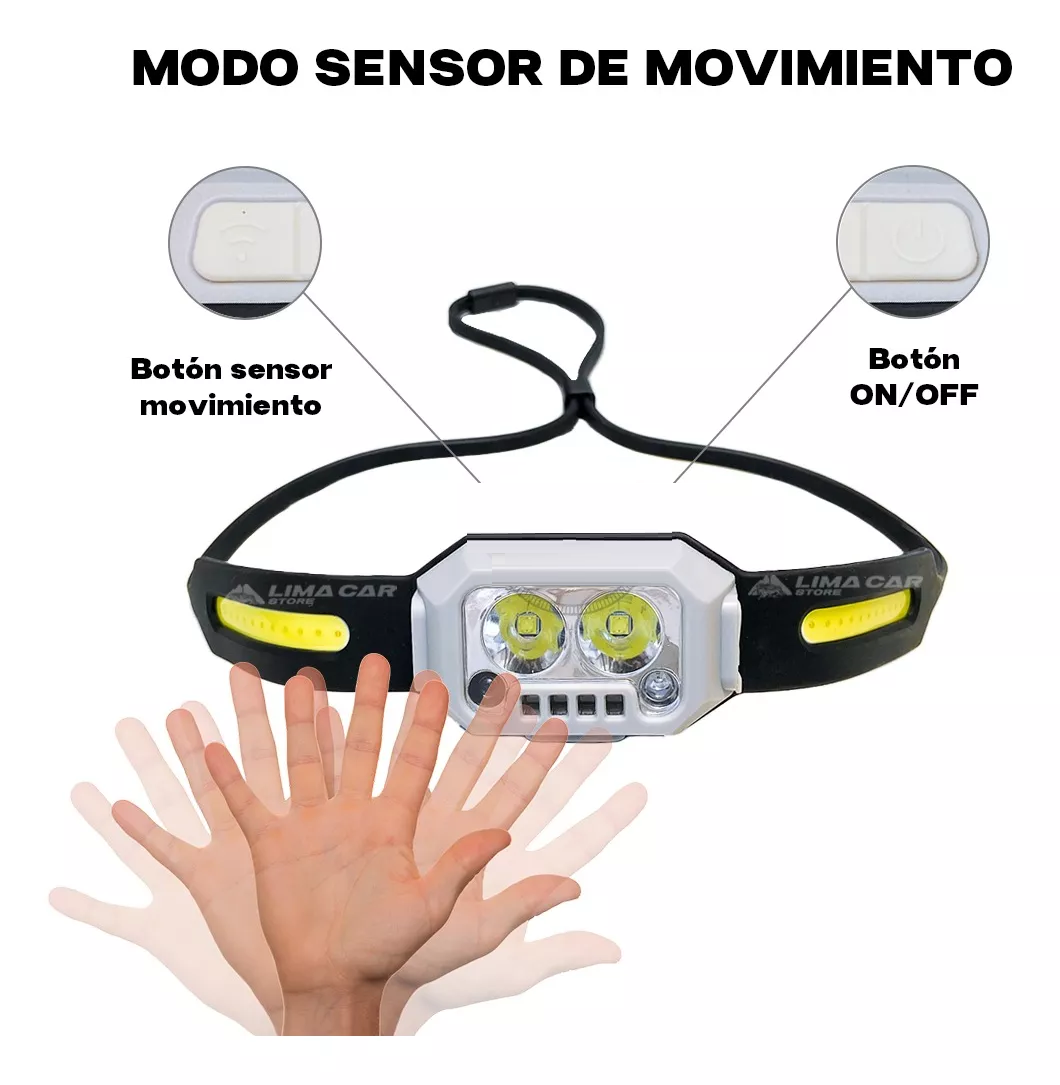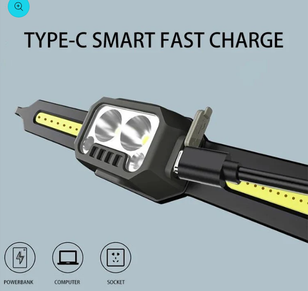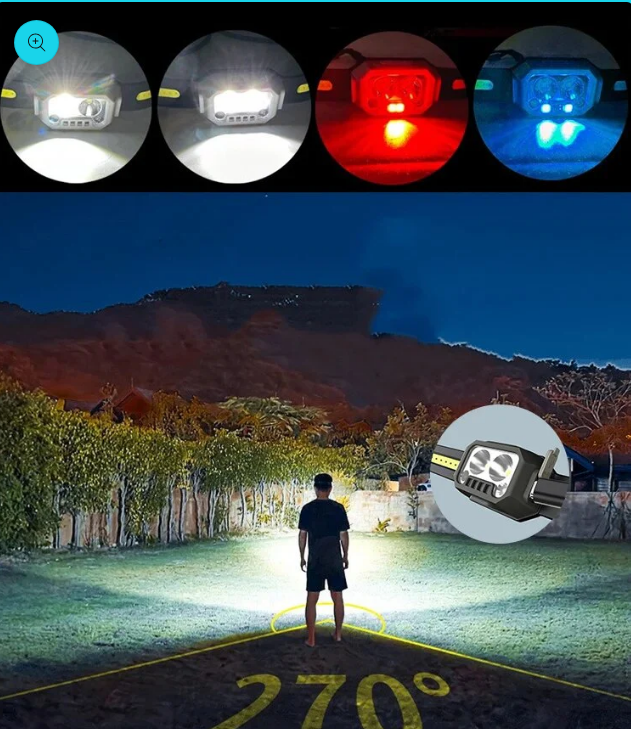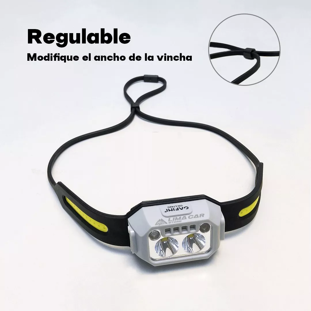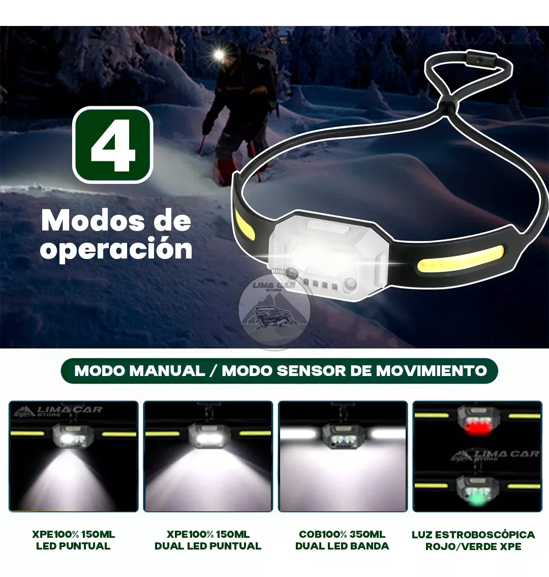 COB de 270 grados: el haz COB de 270 grados de esta lámpara frontal proporciona una iluminación más amplia y brillante, lo que la hace perfecta para explorar áreas oscuras.
