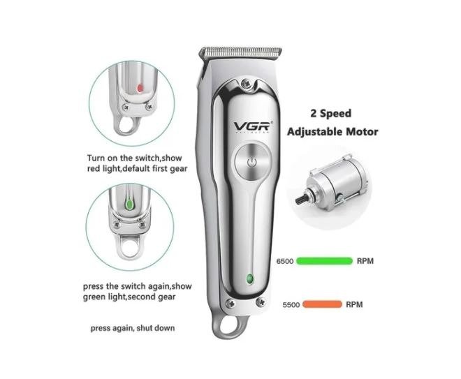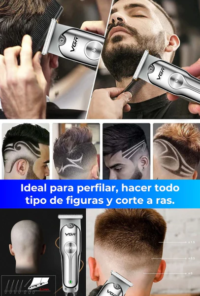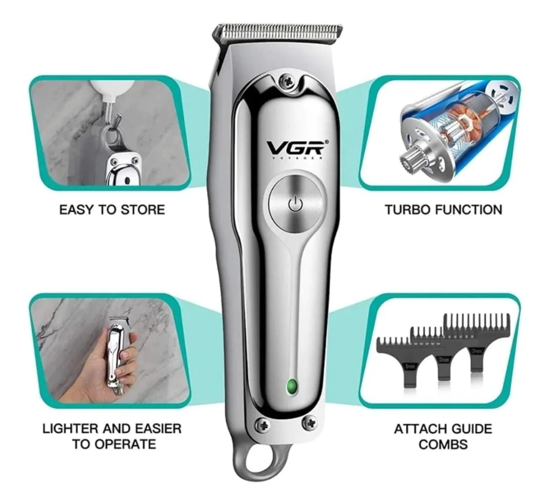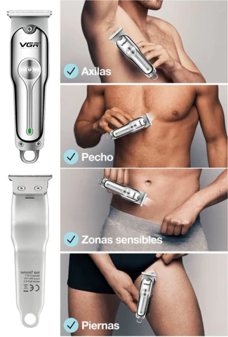 Maquina Patillera VGR, Cable de carga USB, Peine de límite 3(1mm/2mm/3mm), Cepillo de limpieza, Botella de aceite.