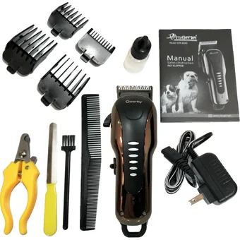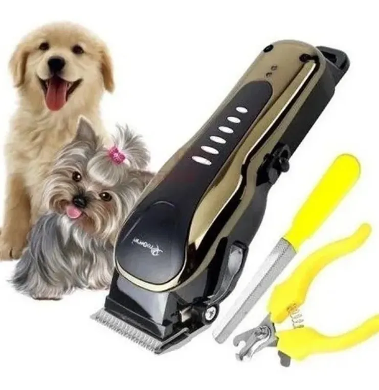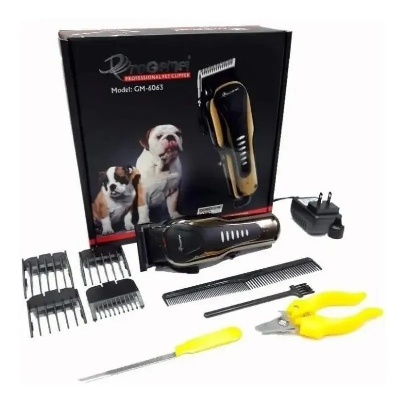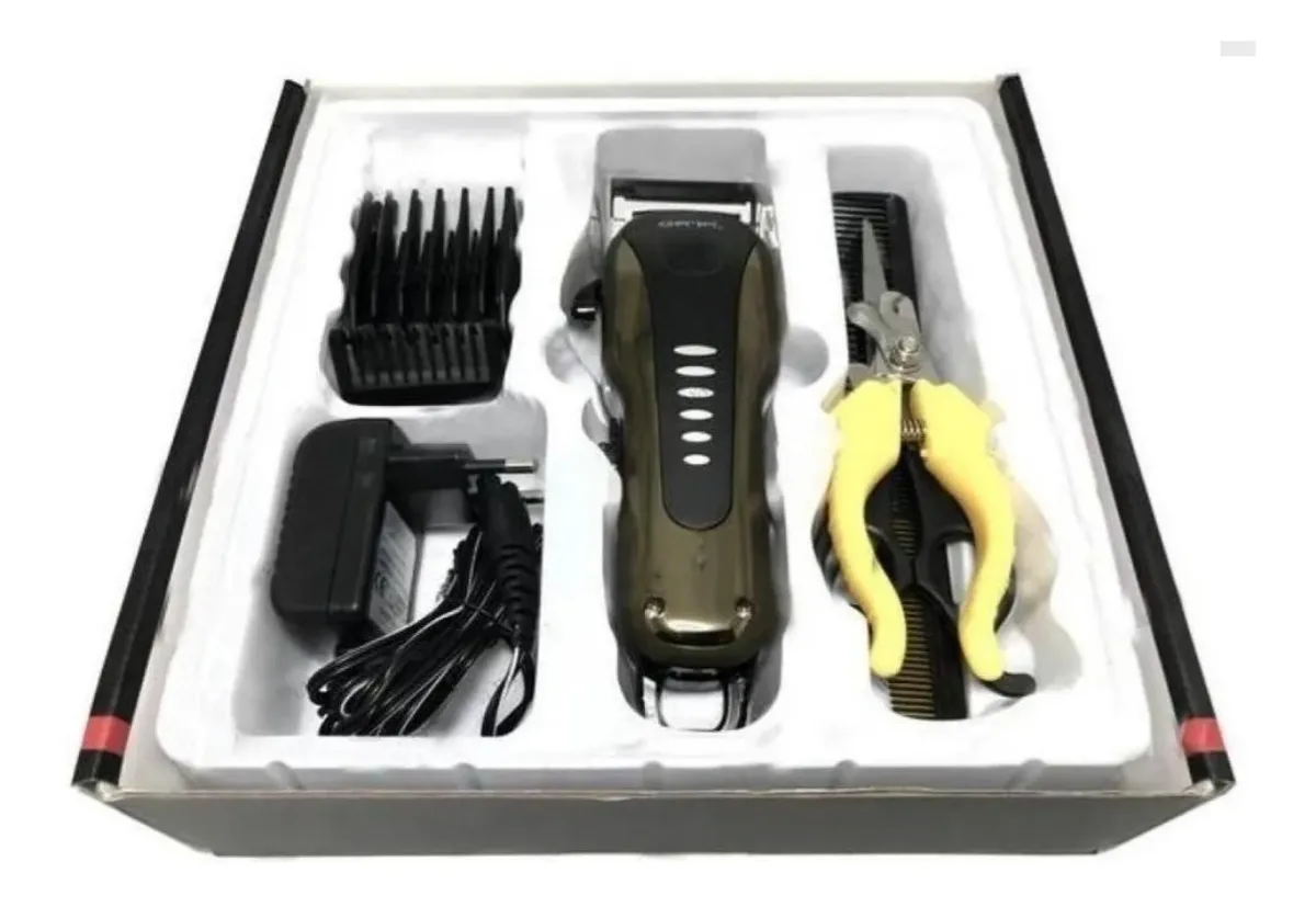 •Kit Peluquería para mascotas de marca Gemei en color negro/dorado.