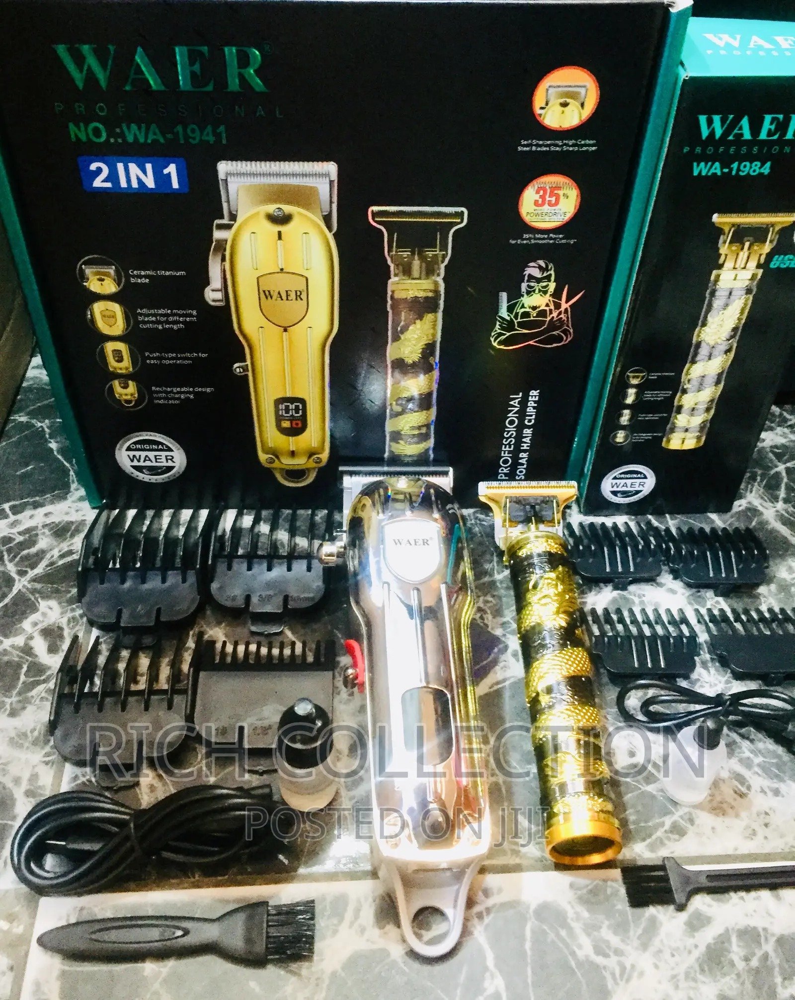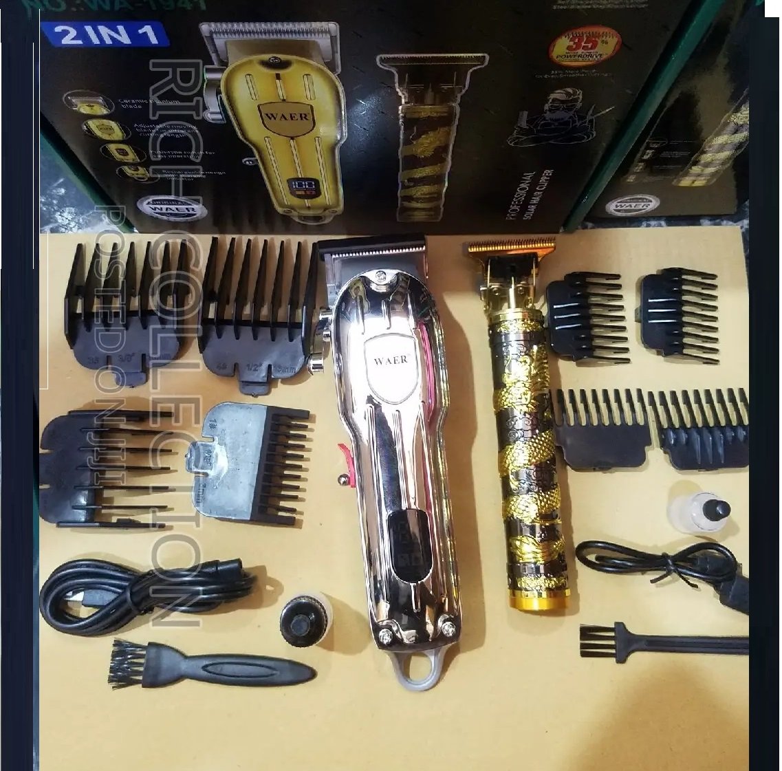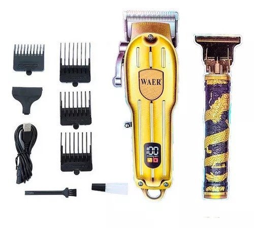 Esta impresionante máquina de afeitar eléctrica 2 en 1 de la marca WAER, modelo WA-1941 Barbera Patillera, es una opción de vanguardia para aquellos que buscan un afeitado suave y preciso. Con su diseño elegante y su tecnología avanzada, esta máquina de afeitar es un compañero indispensable para el cuidado personal masculino.La característica destacada de esta máquina de afeitar es su pantalla LED, que muestra el nivel de carga de la batería en tiempo real. Ya no tendrás que preocuparte por quedarte sin batería en medio de tu rutina de afeitado, ya que la pantalla te mantendrá informado sobre la capacidad restante de la batería. Además, su batería recargable de alta capacidad garantiza un tiempo de uso prolongado, permitiéndote disfrutar de múltiples afeitados sin necesidad de recargar con frecuencia.El WAER WA-1941 Barbera Patillera cuenta con cuchillas afiladas y precisas que ofrecen un afeitado apurado y cómodo, sin irritación ni tirones. Su motor potente y silencioso garantiza un rendimiento excepcional, permitiéndote obtener resultados rápidos y eficientes. Además, su diseño ergonómico se adapta cómodamente a la mano, brindando un manejo seguro y fácil.Contenido de la caja: maquina de cortar pelo y otra maquina con grabado de dragòn , 1 aceite , 1brochilla, 2 cables de carga y cuatro peines así como se aprecia en la fotografía.