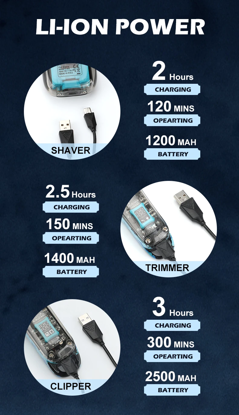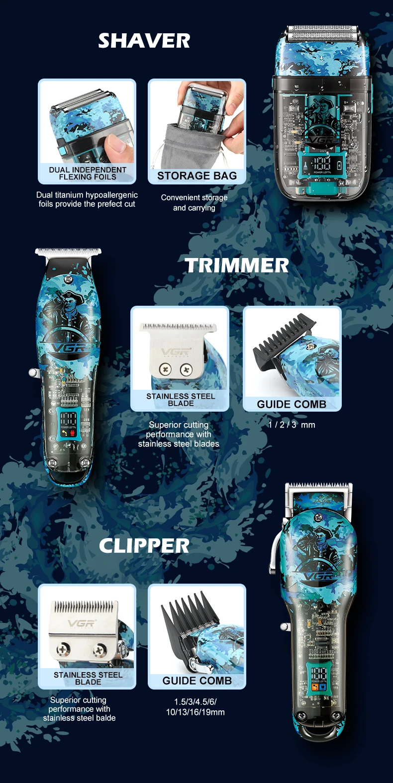 • VGR-Kit combinado de cortadora de pelo para hombres, Afeitadora eléctrica, cortadora de pelo profesional, máquina de corte de pelo inalámbrica recargable, litio
