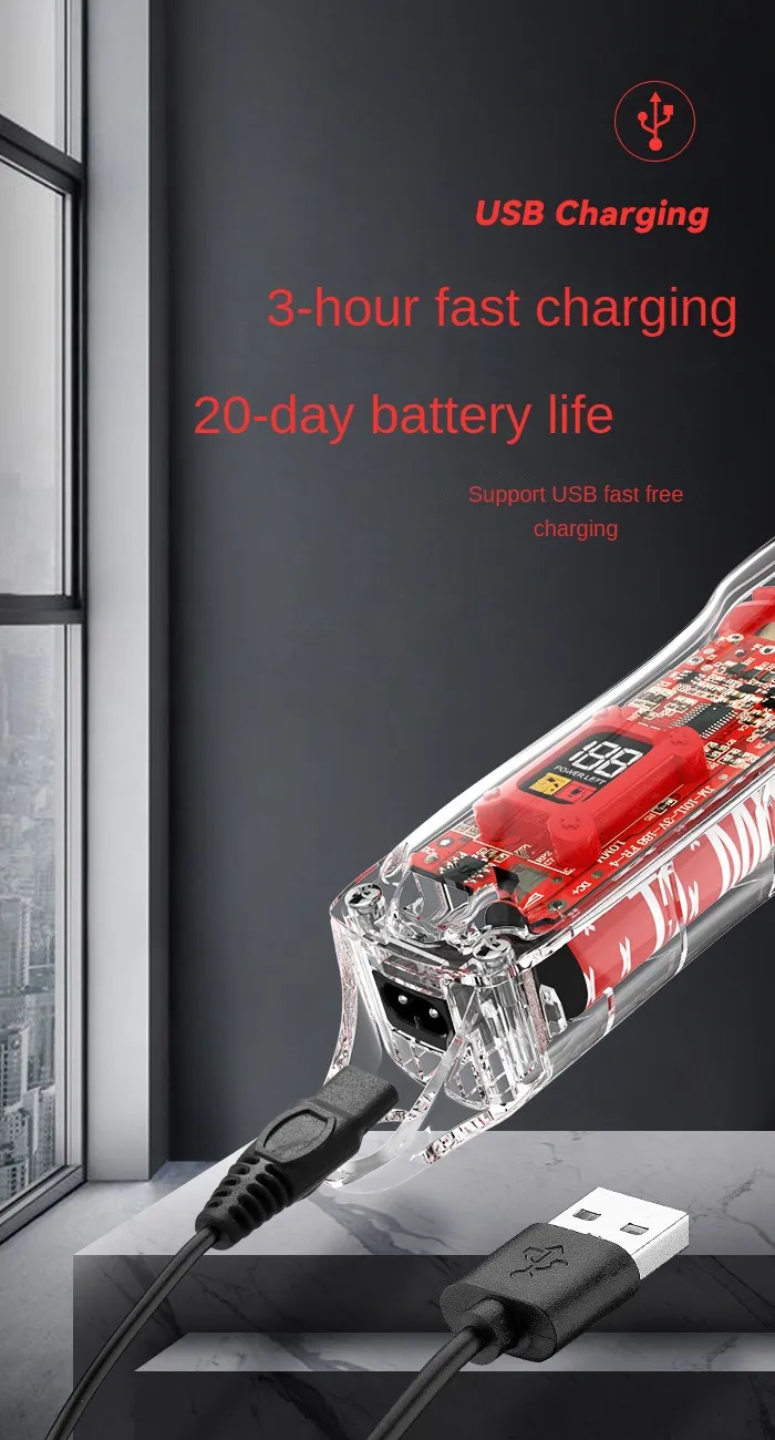 Maquinilla eléctrica para cortar el pelo transparente, maquinilla de afeitar con pantalla Digital LCD, barbería, cortadora de pelo profesional para el hogar para adultos
