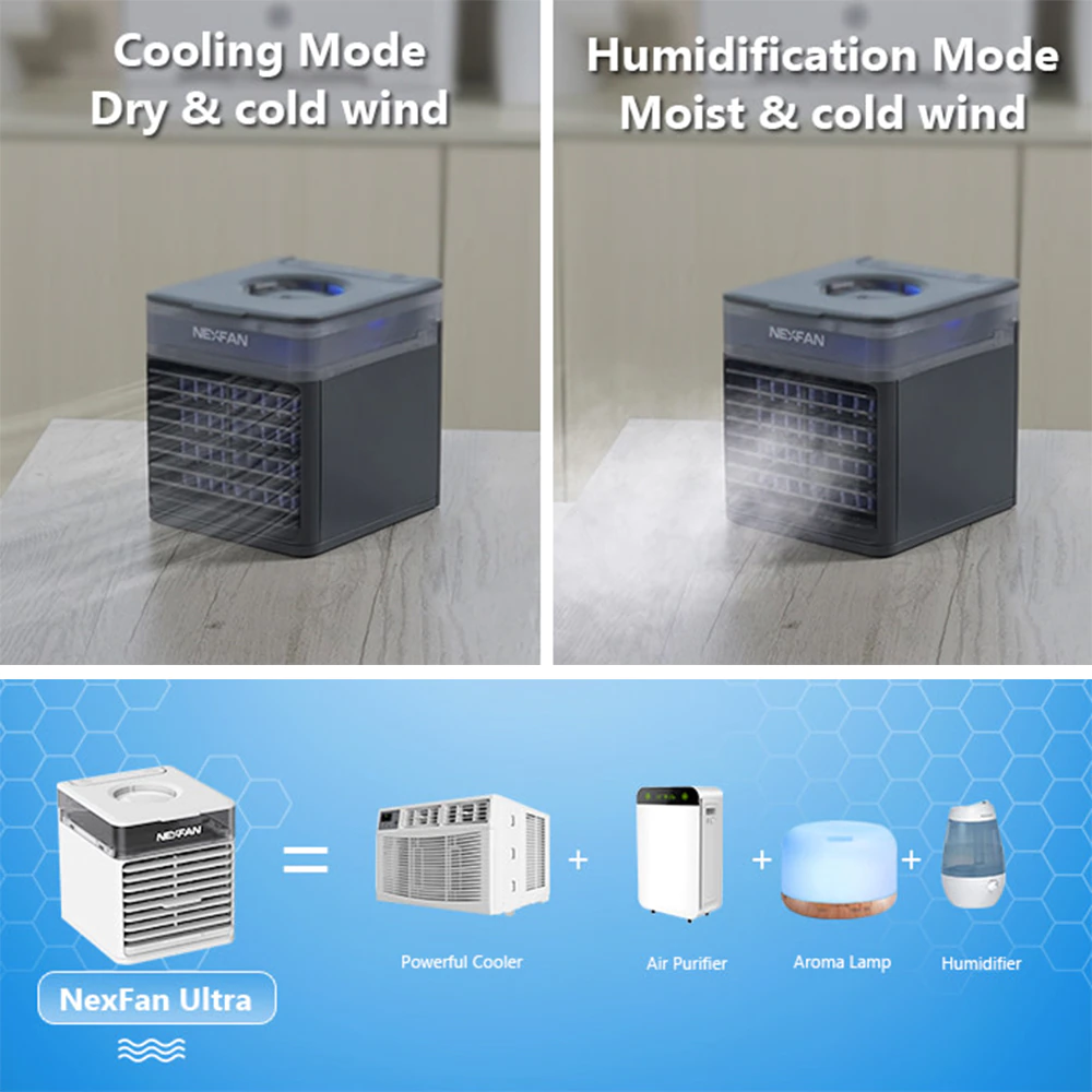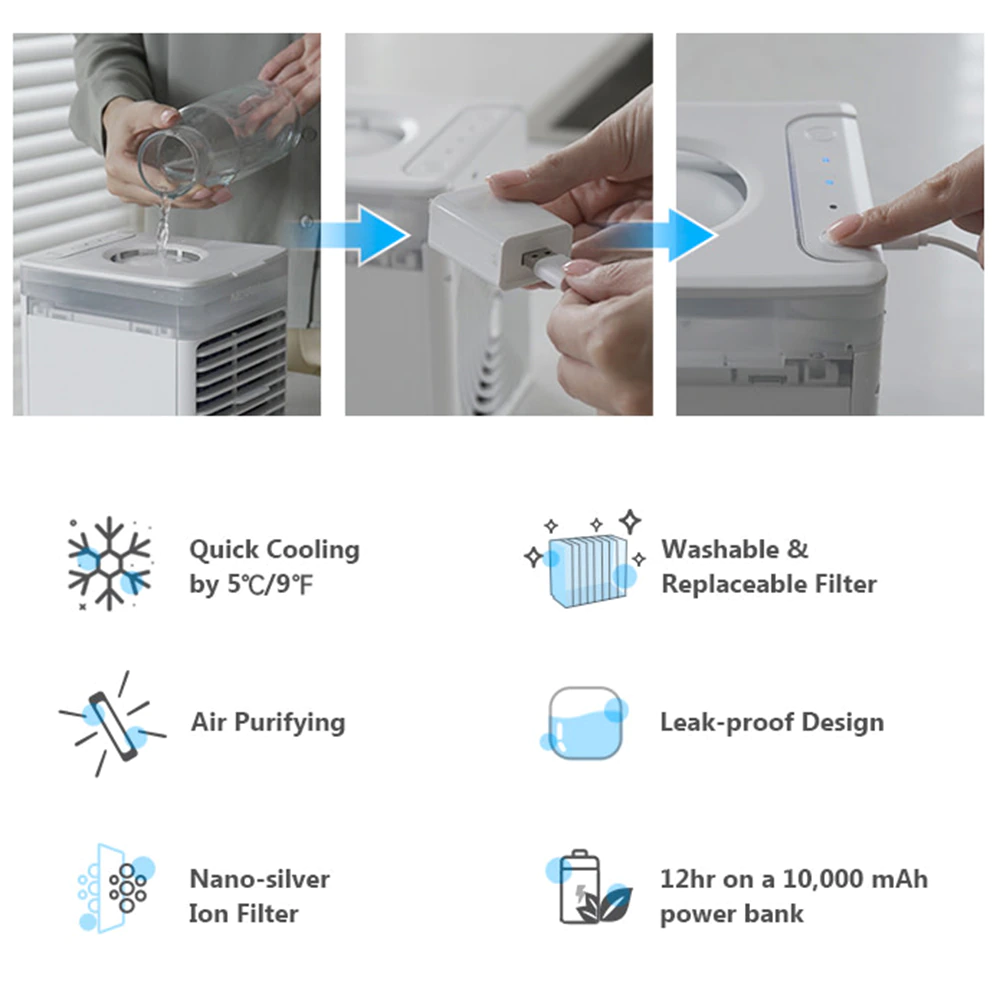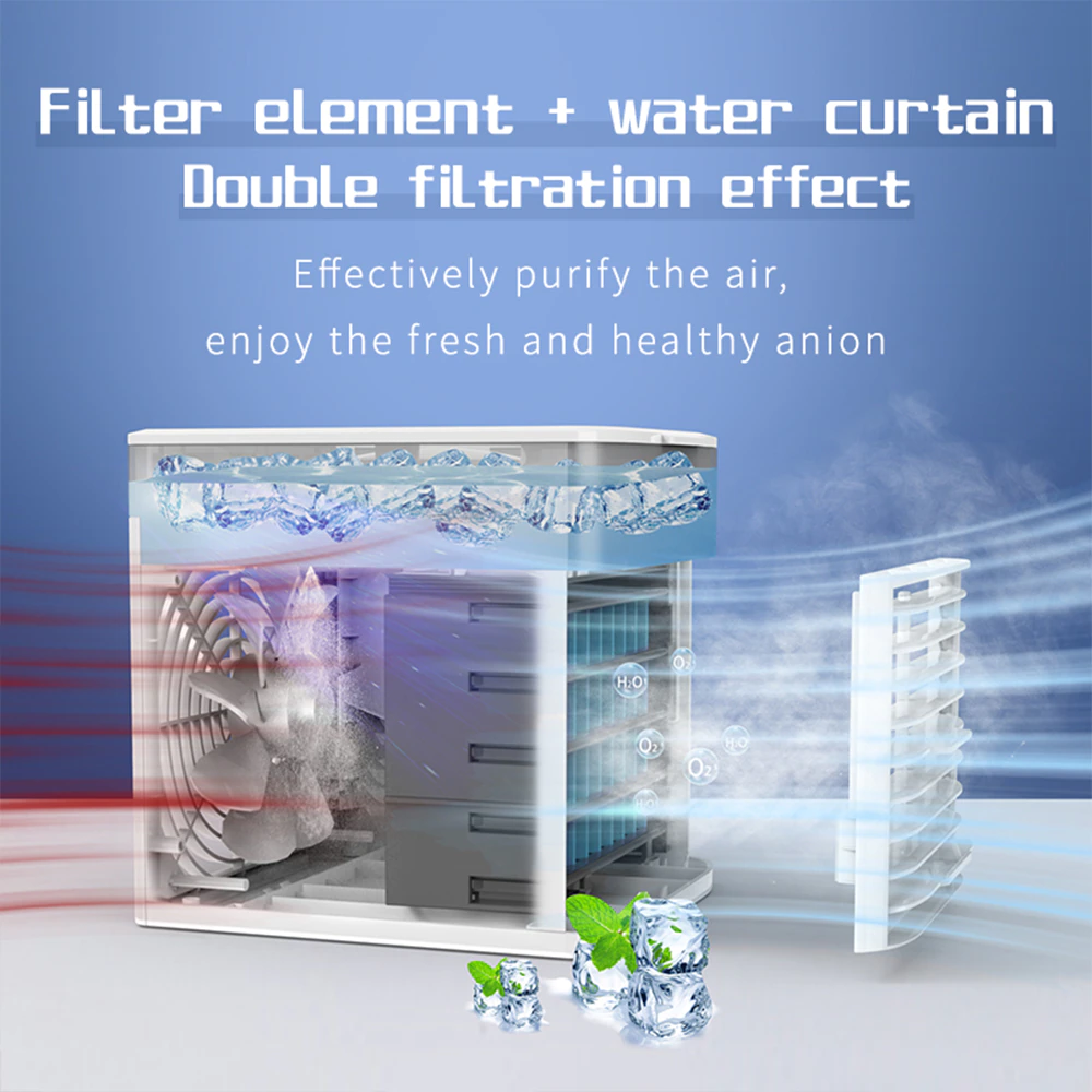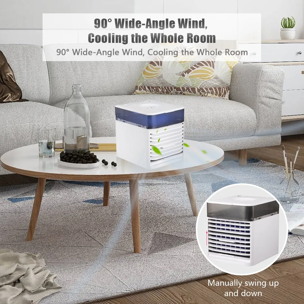 enfriador de aire y humidificador con sistema de esterilización UV, mini ventilador multifuncional para uso doméstico, oficina o dormitorio.
