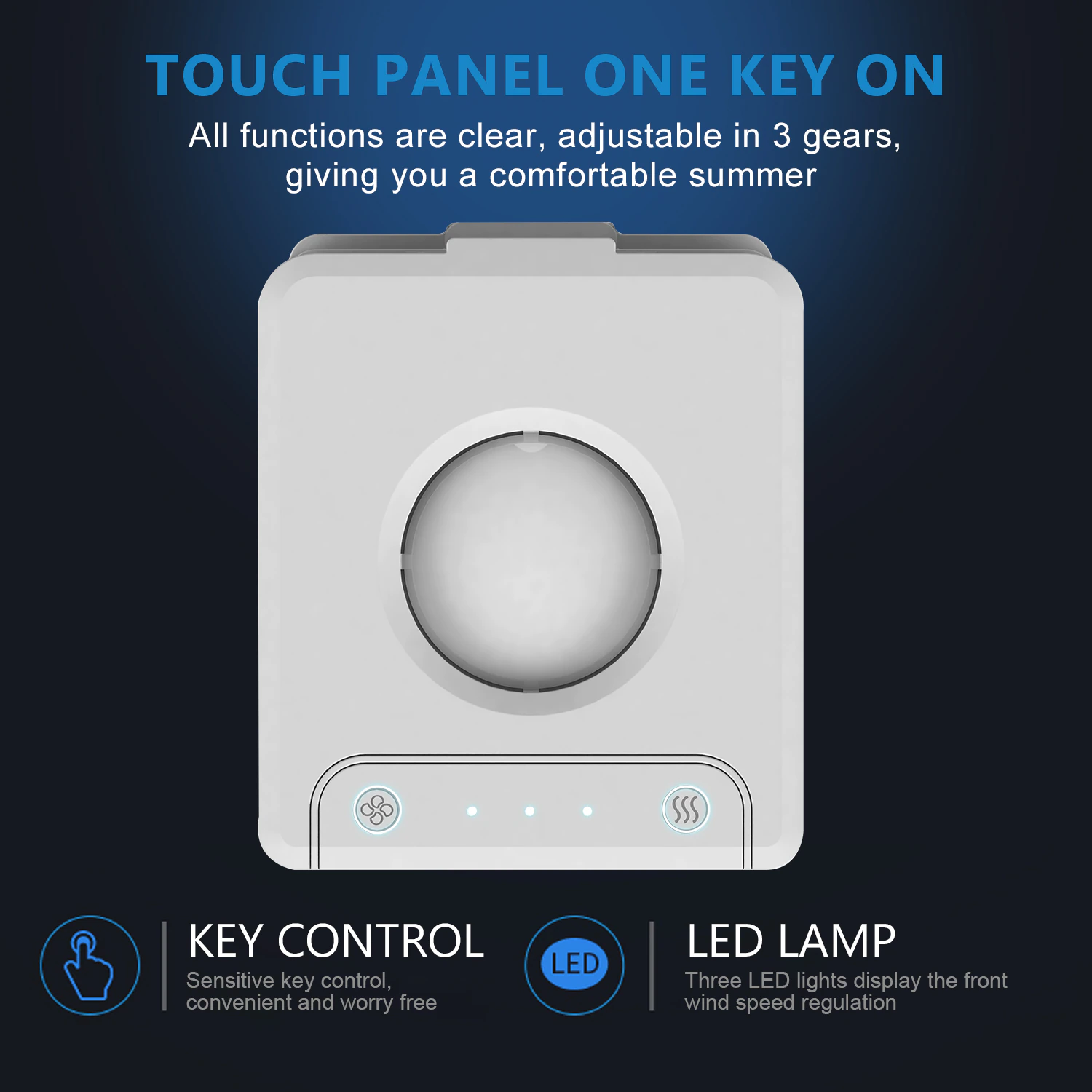 Viento fuerte con 3 niveles ajustables, fácil de cambiar. Depósito de agua grande de 500 ml, añadir agua o hielo para un efecto más frío.
