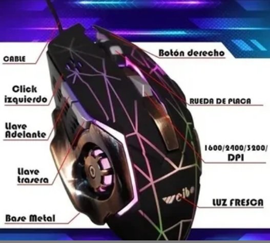 MOUSE WEIBO S200 PARA GAMERS CON 6 BOTONES RETROILUMINADO