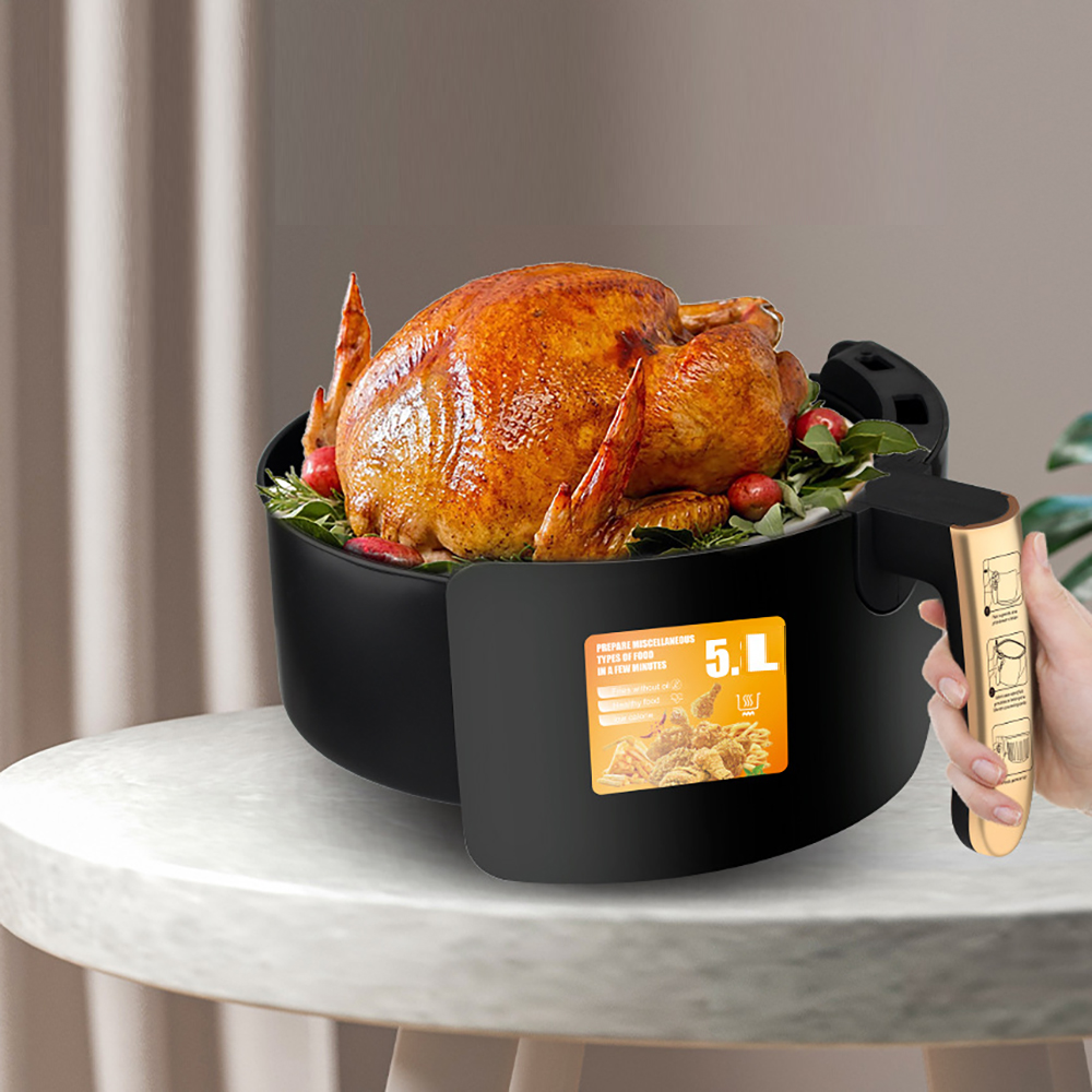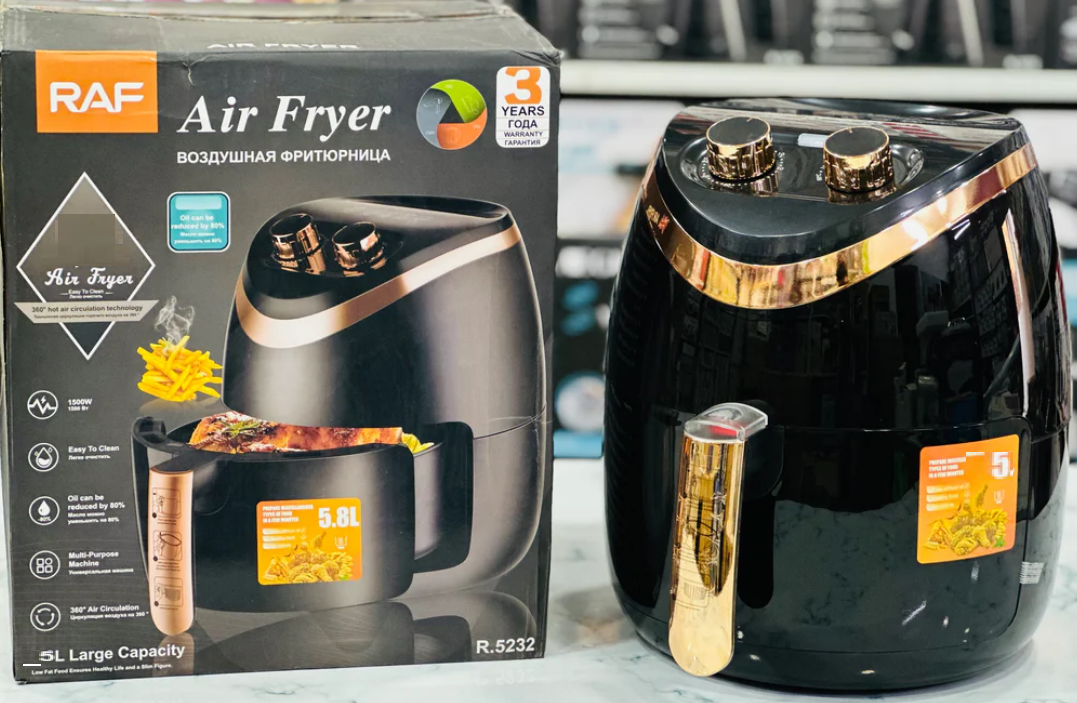 La freidora de aire RAF tiene una gran capacidad de 5, L para que puedas cocinar comidas para tu familia. Ofrece una cocción integral a cualquier nivel con control de termostato ajustable La sartén está hecha de material antiadherente y tiene un diseño fácil de lavar. El mecanismo de control se acciona manualmente, pudiendo elegir el tiempo y grado deseado.