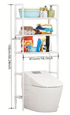 • Crea más espacio de almacenamiento: este almacenamiento de 4 niveles sobre el inodoro mide 23.6 pulgadas de largo x 9.4 pulgadas de ancho x 65.7 pulgadas de alto. 4 estantes abiertos pueden organizar más artículos como papel higiénico, champú, secador de pelo o plantas en maceta. El diseño vertical ocupa menos espacio y facilita la organización del baño