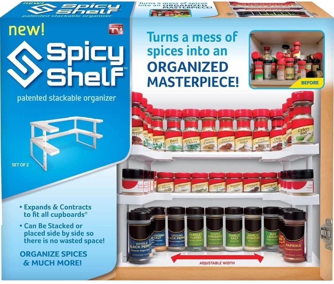 - El estante organizador de clóset Spicy de cocina es fácil de instalar y no se necesitan herramientas. Usa las patas libres o los pasadores de estantes que tengas.