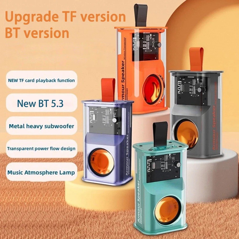 Mini altavoces mecánicos portátiles, altavoces inalámbricos transparentes, Bluetooth, estéreo envolvente, reproductor de Audio Altavoz compatible Con Bluetooth De 8V Mini Subwoofer Estéreo Pequeño De Audio Para La Fiesta De Camping Al Aire Libre