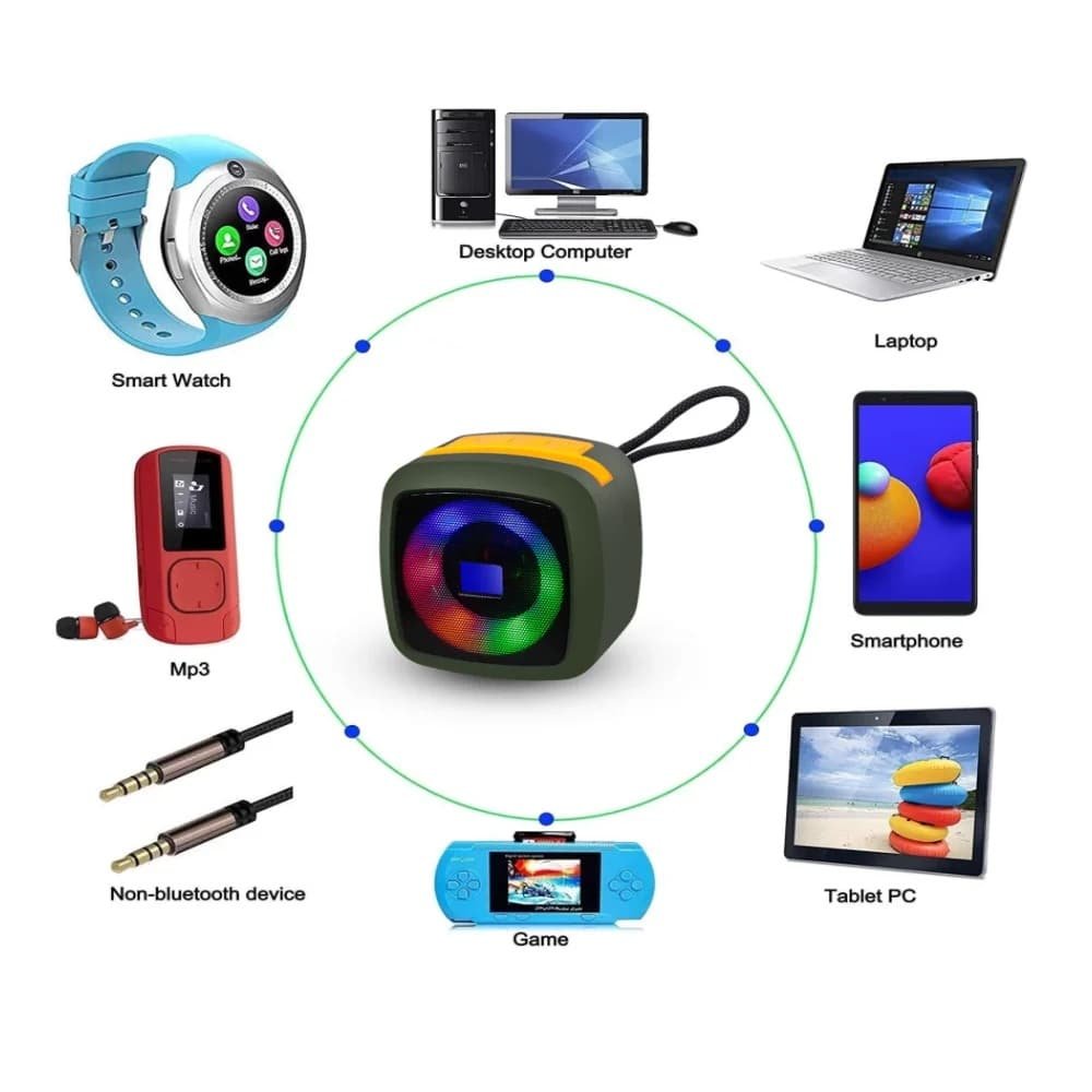 Luces LED Multicolores: Este parlante cuenta con luces LED integradas que dan vida a tu entorno. Puedes elegir entre una variedad de modos de iluminación, desde suaves transiciones de colores hasta una luz fija en el color de tu elección. Las luces LED añaden un toque de magia a tu experiencia auditiva.