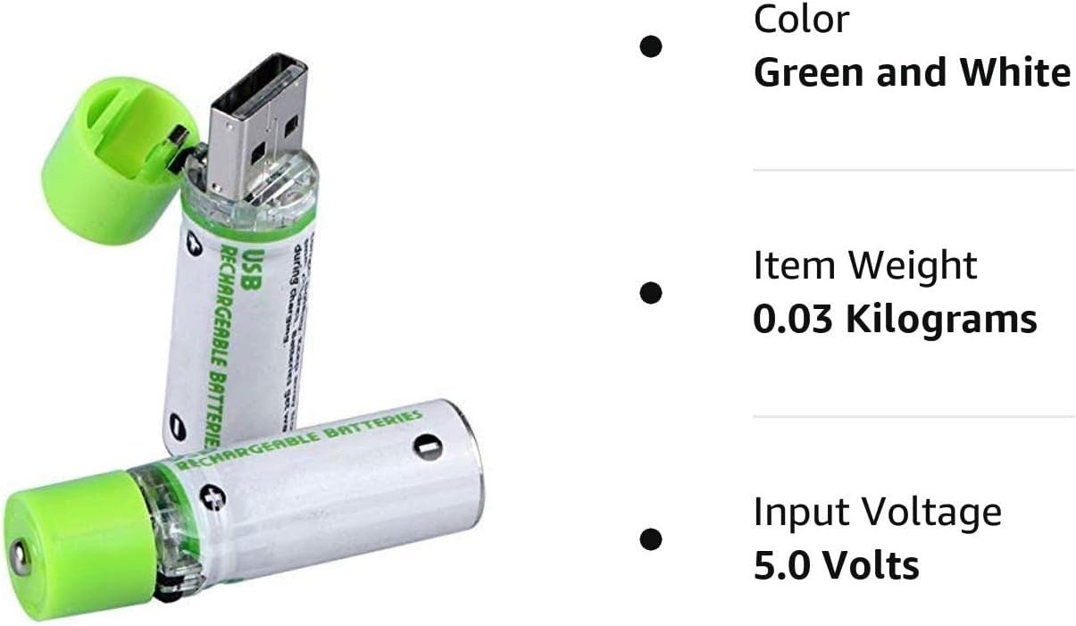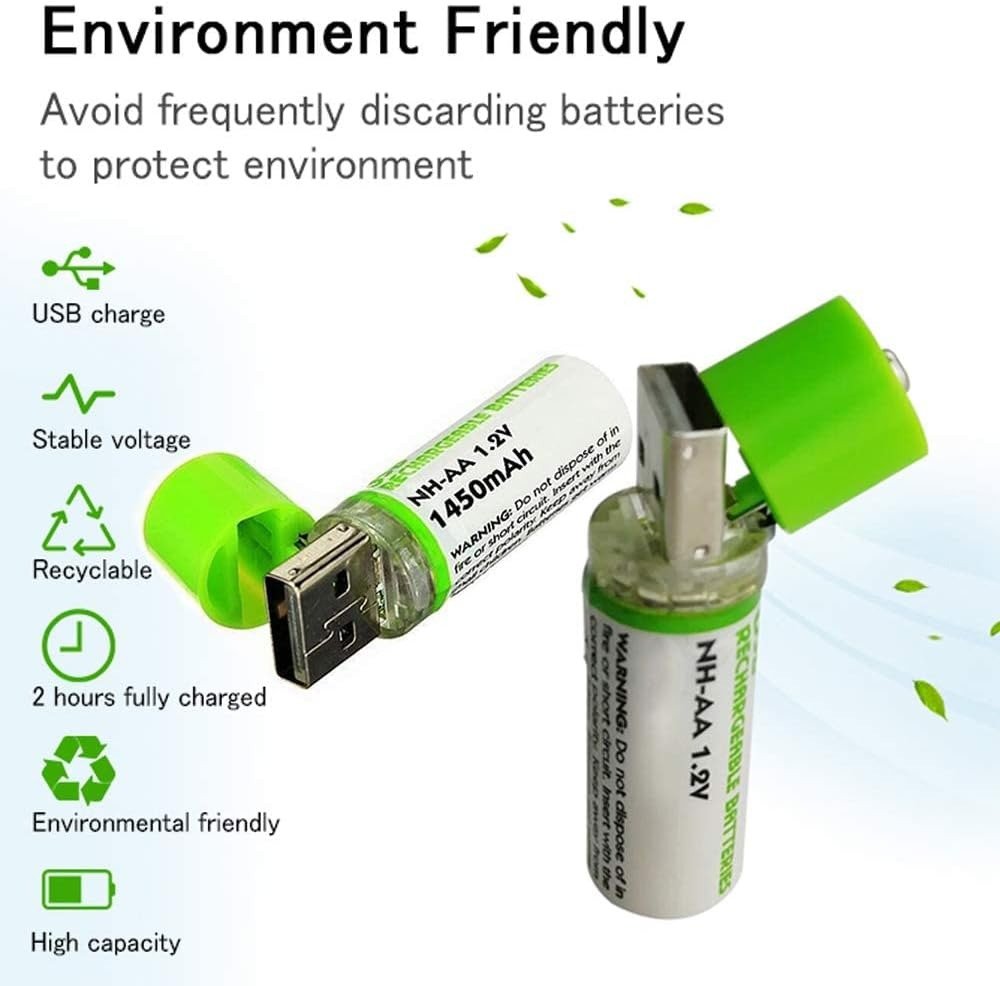- ✅ Tipo de batería: pilas AA recargables USB, NiMH, 1450 mAh, no como alcalinas