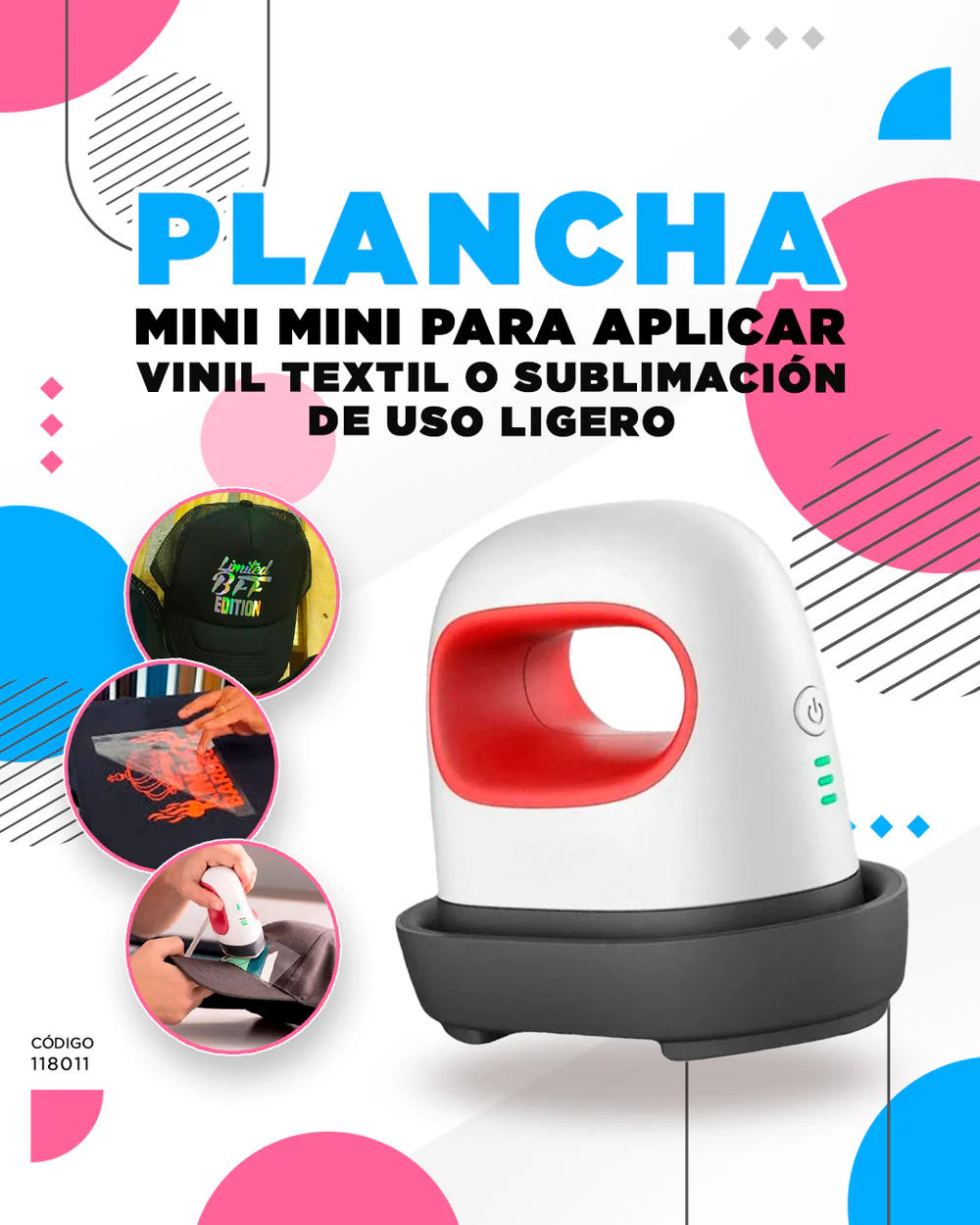 Mini plancha térmica portátil diseñada ergonómicamente para un uso cómodo y seguro. Ideal para trabajos de detalle en vinilo textil, manualidades y proyectos DIY, donde una plancha tradicional no es práctica. Características principales *Diseño ergonómico con asa de agarre cómodo *Fácil de usar y manejar *Tamaño compacto y portátil *Ideal para transferir fotos, texto y vinilo *Apta para ropa, camisetas, monos de bebé, sombreros, bolsos, carteras, alfombrillas de mouse y fundas de almohada *Recomendada para artesanos, estudiantes, emprendedores y uso doméstico *3 niveles de temperatura ajustables mediante perilla Temperaturas: *Baja: 140 °C (284 °F) *Media: 160 °C (320 °F) *Alta: 190 °C (374 °F) *Apagado automático tras 10 minutos de inactividad *Base de seguridad que evita quemaduras Especificaciones técnicas *Marca: Genérica *Voltaje: 110 V / 220 V *Potencia: 150 W *Tamaño de la placa térmica: 10,3 x 2,6 cm *Materiales compatibles: algodón, poliéster, telas sintéticas, cuero y similares Colores disponibles: rosa o verde Contenido del paquete *1 mini plancha térmica *1 frasco atomizador *1 forro de tela para guardarla *5 stickers