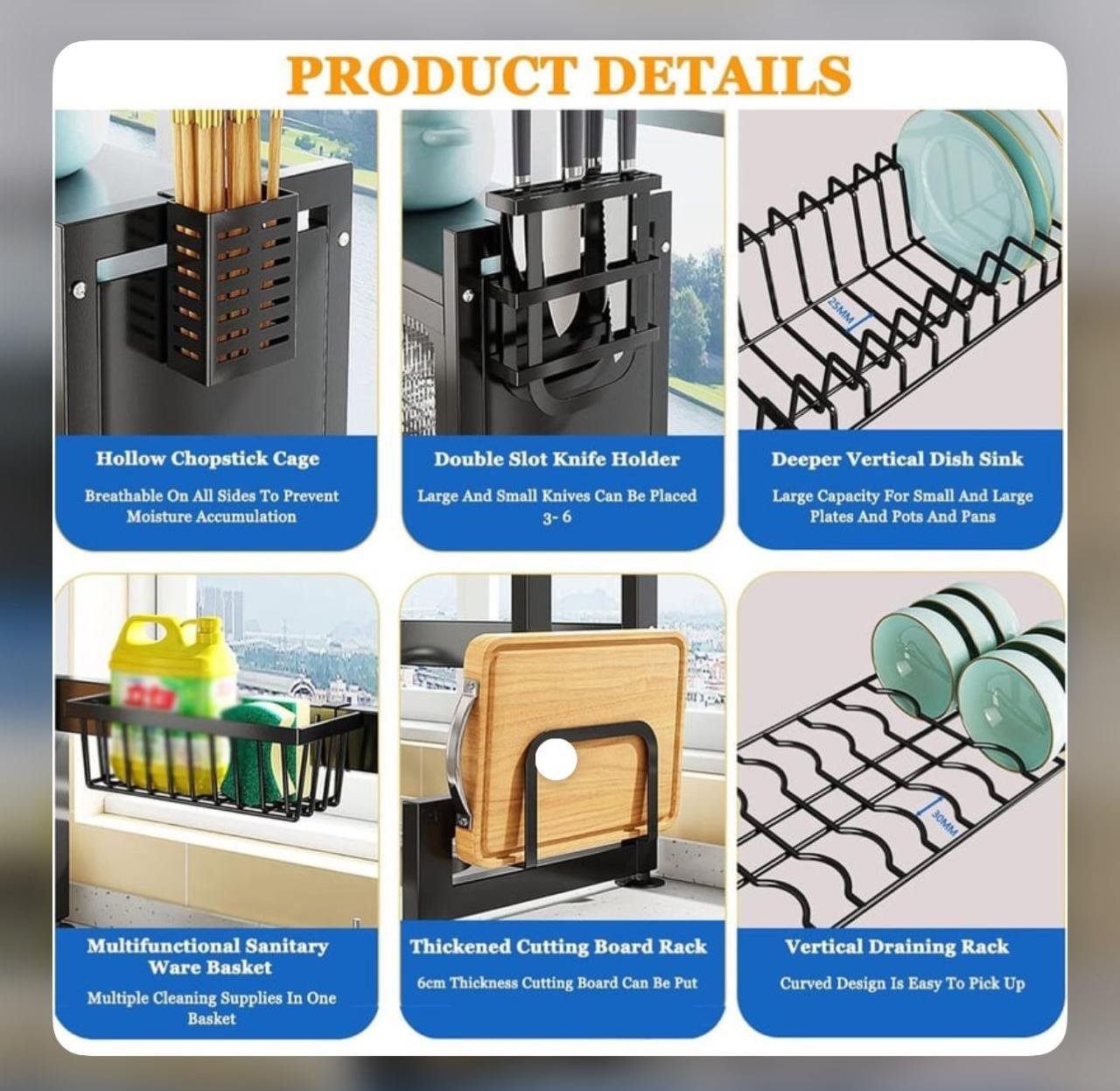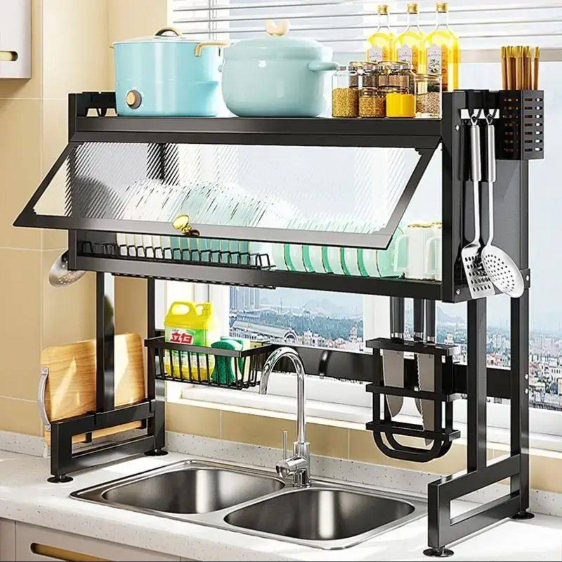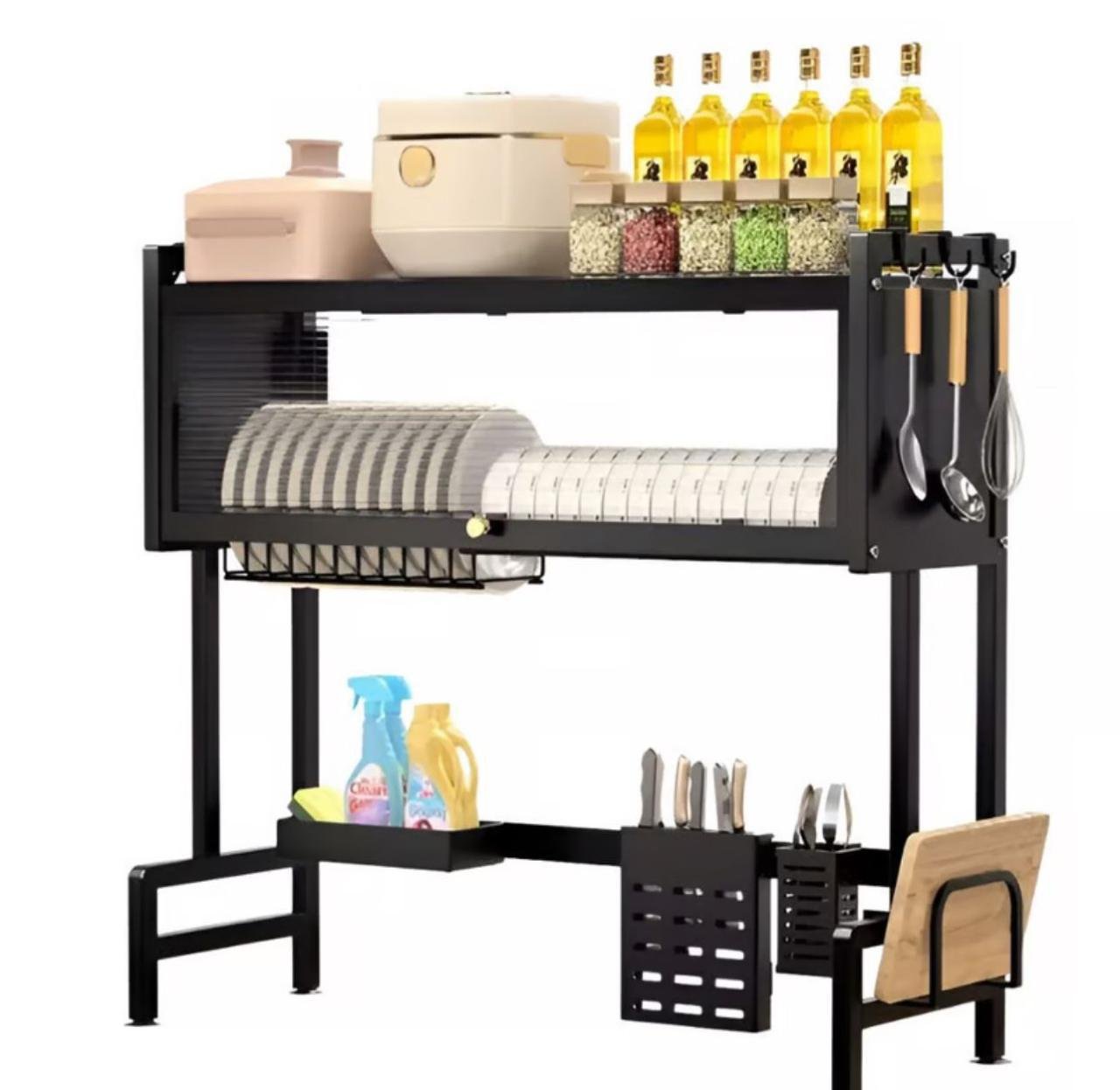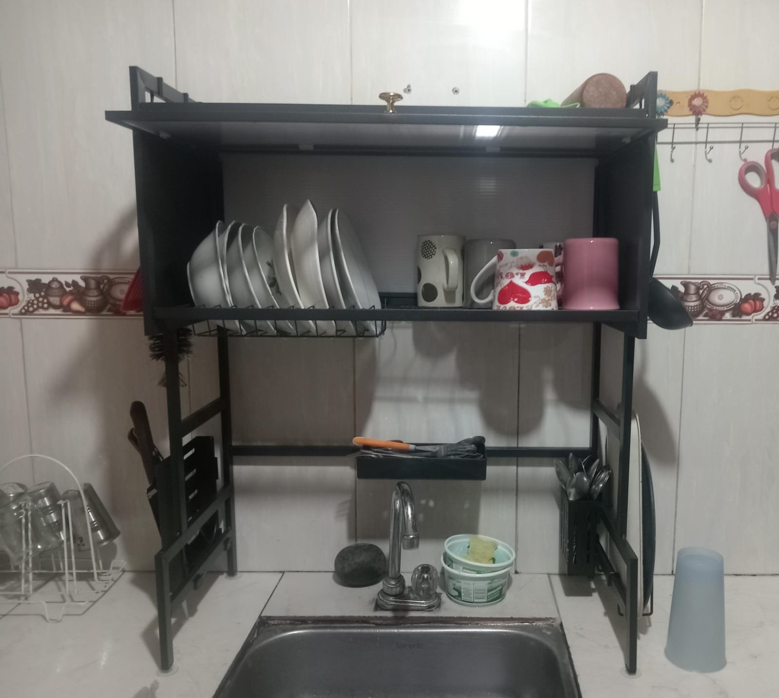 Adecuado para usar sobre el fregadero o en el mostrador, maximizando la organización de utensilios, platos y suministros.