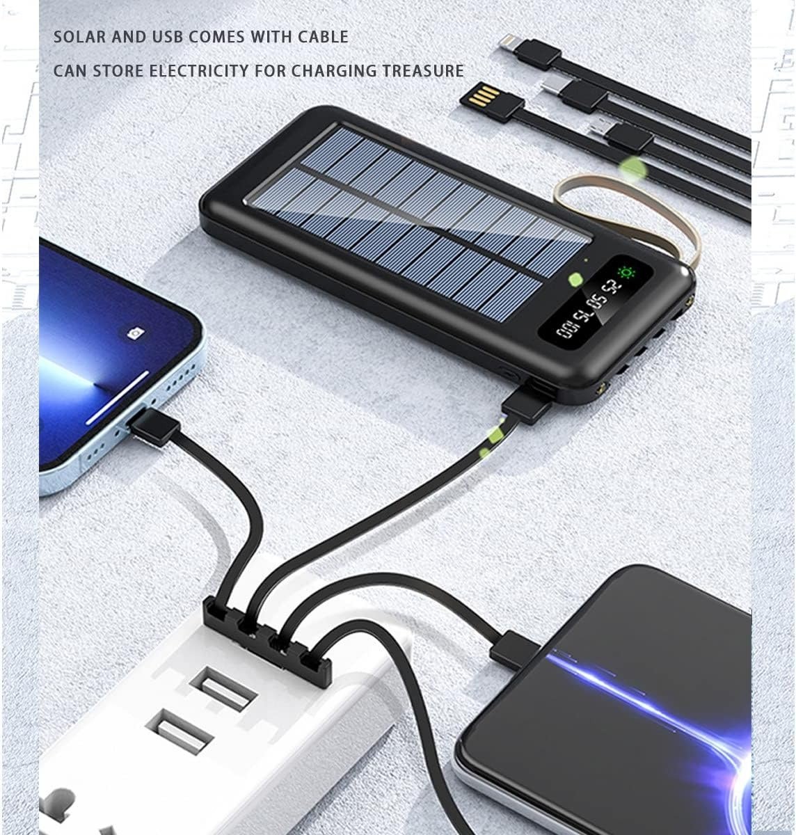 Power Bank Carga 10000mAh Negro Batería Externa Impermeable Luz Led Batería de polímero de alta capacidad de 10000mAh, que podría recargar la batería bajo la luz solar, alta tasa de conversión y ecológica.