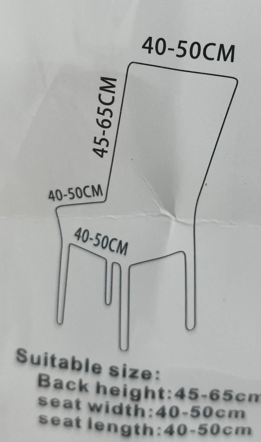 Esta funda elástica de alta densidad para sillas de comedor ofrece un ajuste perfecto gracias a su gran elasticidad. Se adapta fácilmente a la mayoría de sillas de comedor con una altura de respaldo de 45 a 65 cm (17,7 a 25 pulgadas), un ancho de respaldo de 40 a 50 cm (15,7 a 19,7 pulgadas) y una longitud de asiento de 40 a 50 cm (15,7 a 19,7 pulgadas). Consulte la guía de medidas para obtener más detalles.