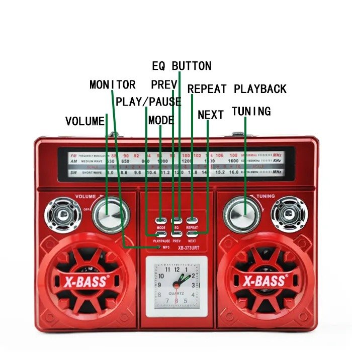 RADIO portátiles X-BASS de alta calidad con AM/FM/SW, tarjeta USB TF y antorcha XB-373URT